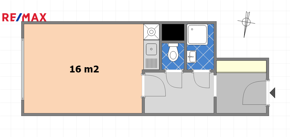 Samostatná toaleta a oddělená koupelna – komfort, který u 1kk nebývá standardem.