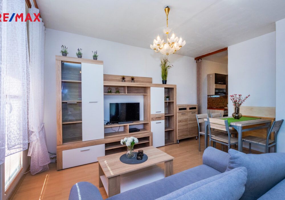 Byt je v původním stavu, částečně renovovaný ( okna, zánovní kuchyňská linka ) a prodává se zařízený tak, jak je uvedeno ve fotodokumentaci. Lze ho okamžitě užívat nicméně modernizace interiéru je vhodná.