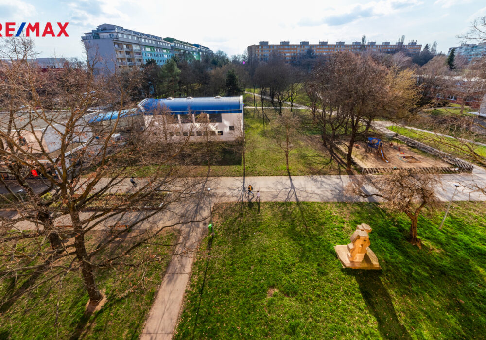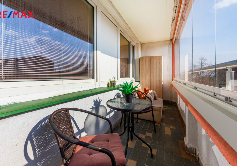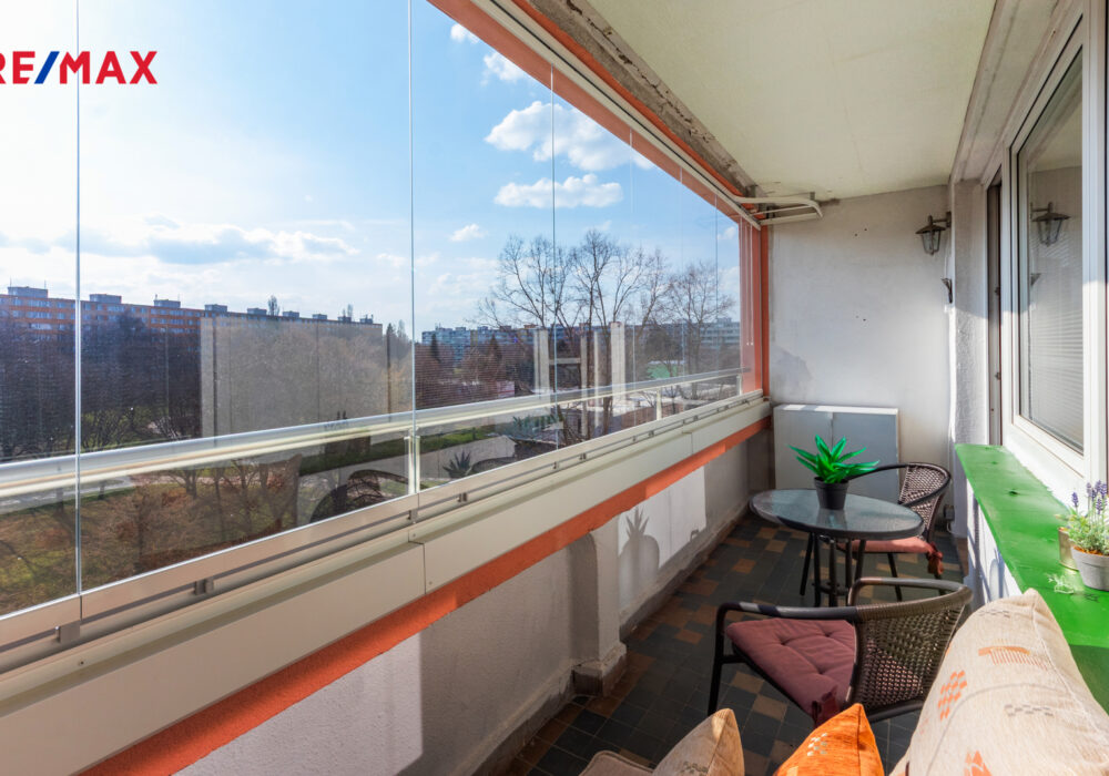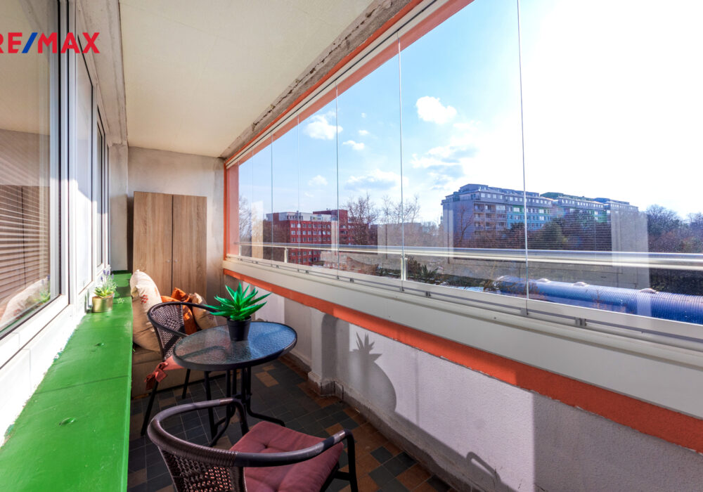 Velkou předností tohoto bytu je prostorná zasklená lodžie ( 7,9 m2 ) a poloha přímo u metra, orientace je do klidné části ( NE do ul. Vysočanská ).
