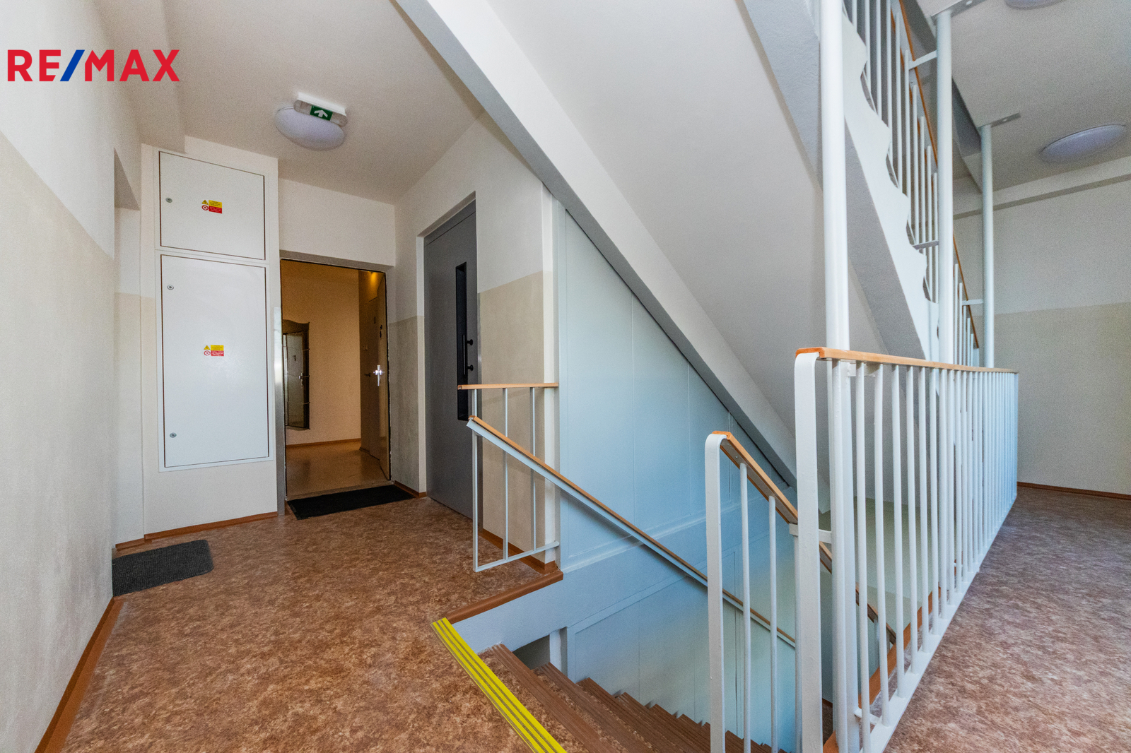 Panelový dům je po celkové revitalizaci včetně právě dokončené renovaci společných prostor.