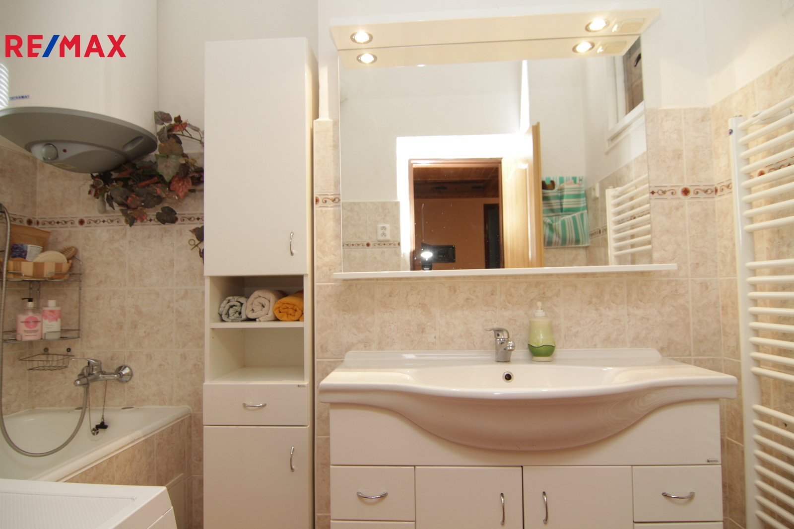 Byt působí velmi příjemně, s vysokými stropy a osobitým stylem. V předsíni je chytře řešený snížený strop pro úložný prostor. Koupelna a toaleta jsou oddělené, nechybí ani malý sklad nebo spíž. Zkrátka byt, kde stačí zatopit a bydlet.