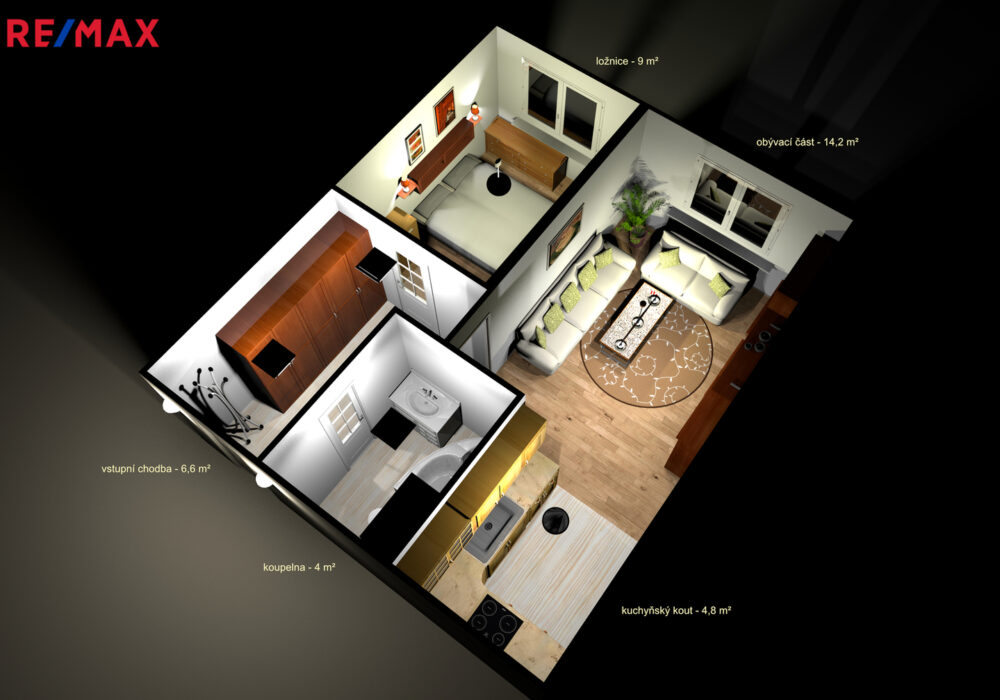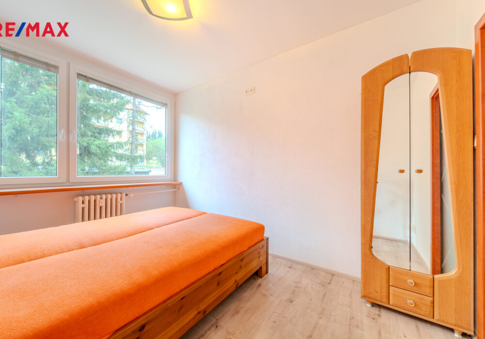 Tento byt se nachází ve druhém patře čtyřpodlažního zatepleného panelového domu a nabízí příjemné bydlení s orientací na jihovýchod. Součástí bytu je krom vestavěných skříní i kumbál na patře a sklepní kóje v suterénu domu, což novému majiteli poskytne dostatek úložného prostoru.