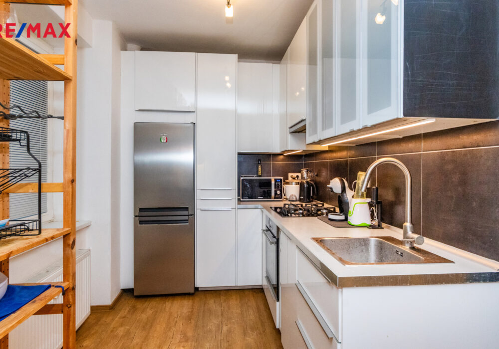 Nabízíme světlý byt 2+kk v osobním vlastnictví o ploše 50 m² + sklep 2 m², na adrese Bělocerkevská 1303/30, Praha 10 – Vršovice. Byt je po kompletní rekonstrukci z roku 2017 a nachází se v revitalizovaném domě s dobře fungujícím SVJ.