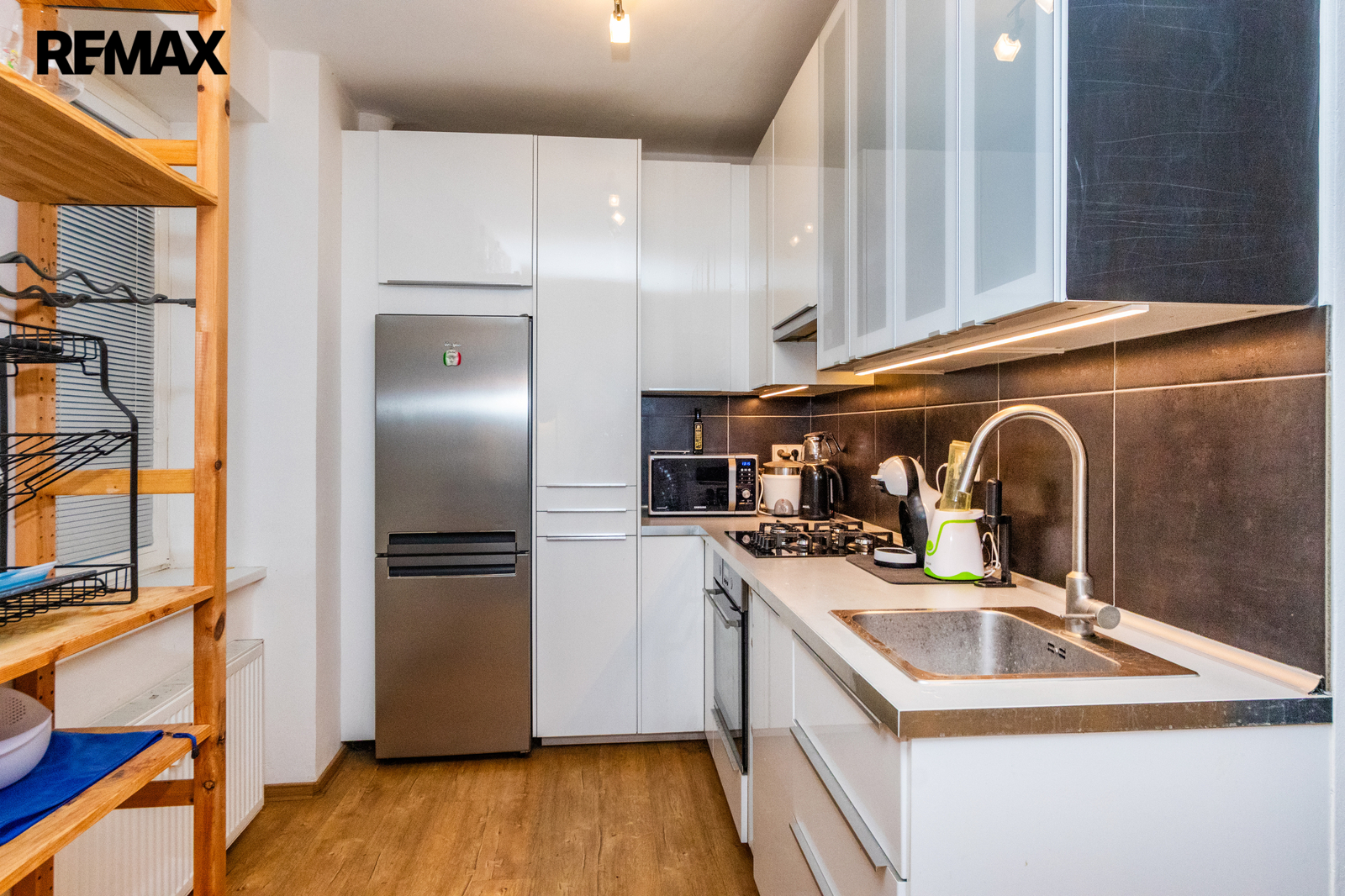 Nabízíme byt 2+kk v osobním vlastnictví o ploše 50 m² + sklep 2 m², na adrese Bělocerkevská 1303/30, Praha 10 – Vršovice. Byt je po kompletní rekonstrukci z roku 2017 a nachází se v revitalizovaném domě s dobře fungujícím SVJ.