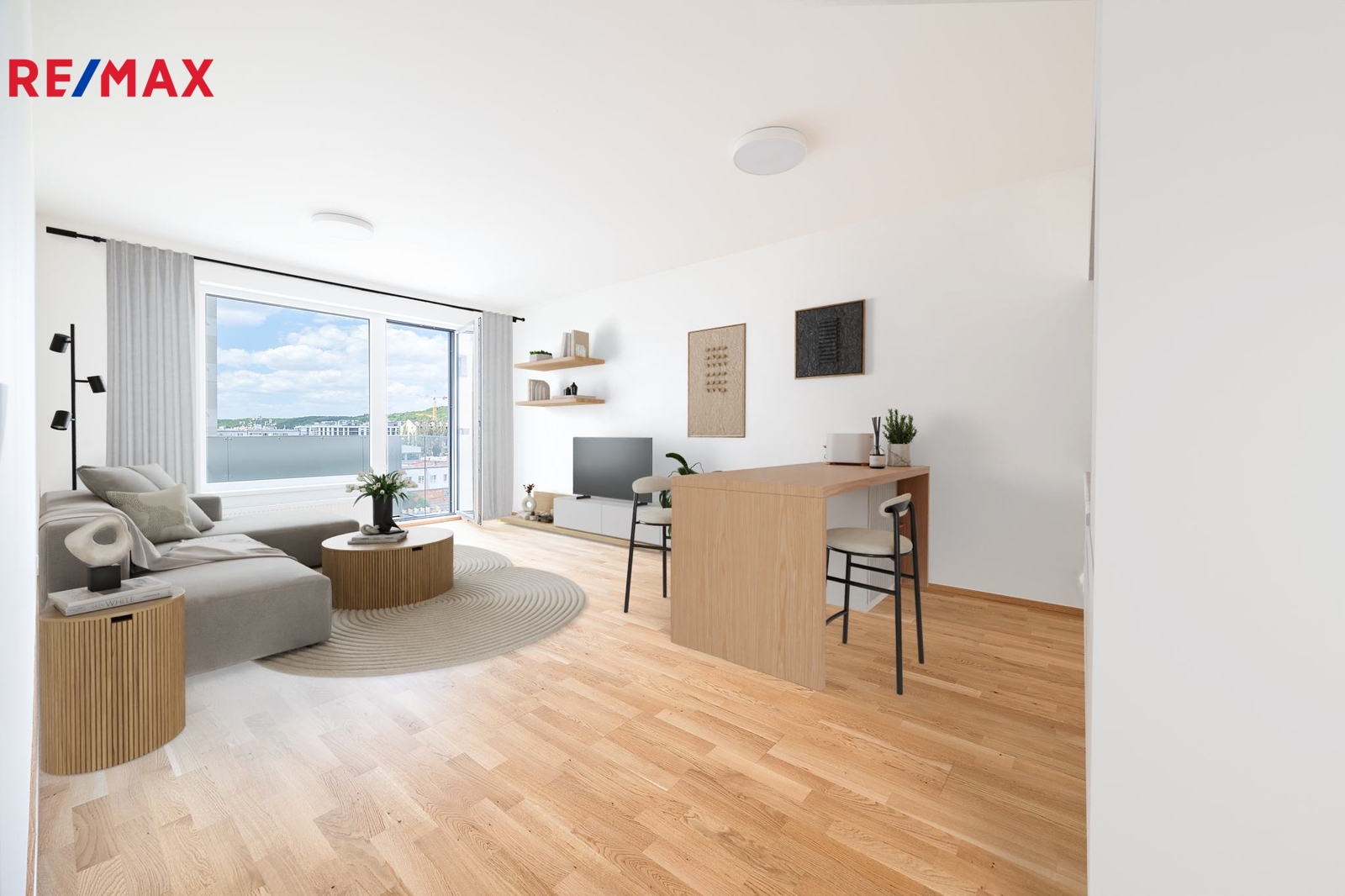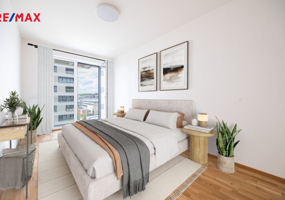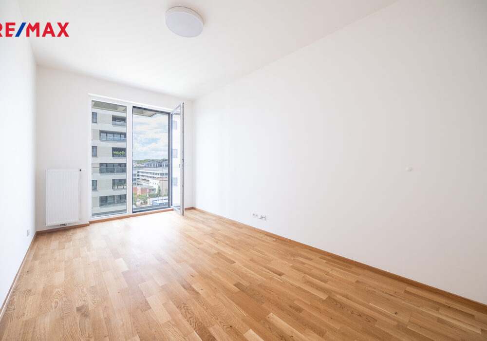Byt má praktické uspořádání, nachází se v 7.patře a je orientovaný na západ. Vysoký standard bytu: dřevěná okna s izolačními trojskly, rekuperace a příprava na venkovní žaluzie.