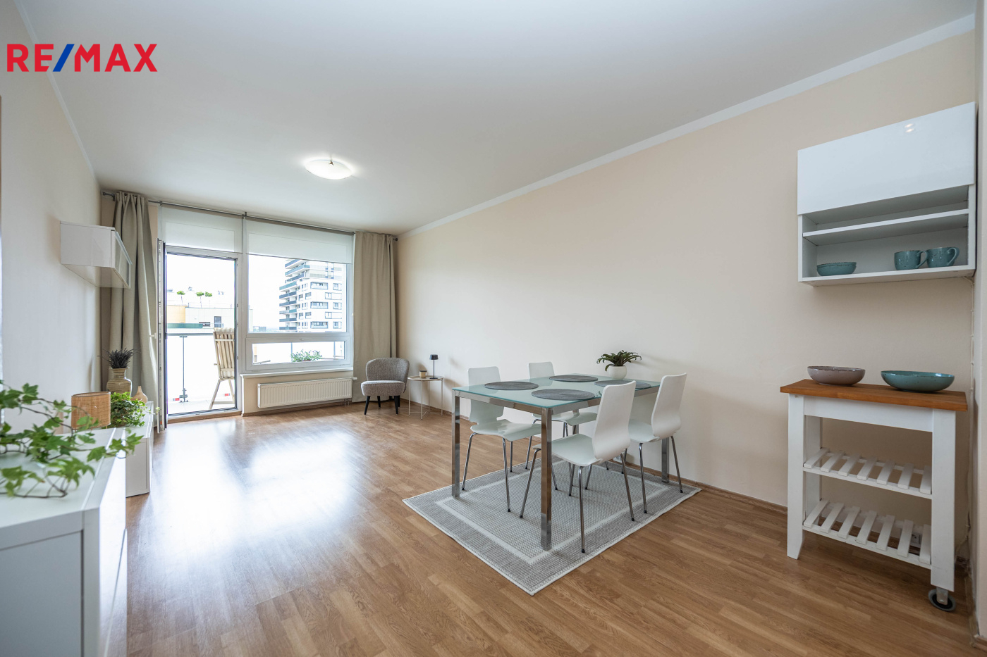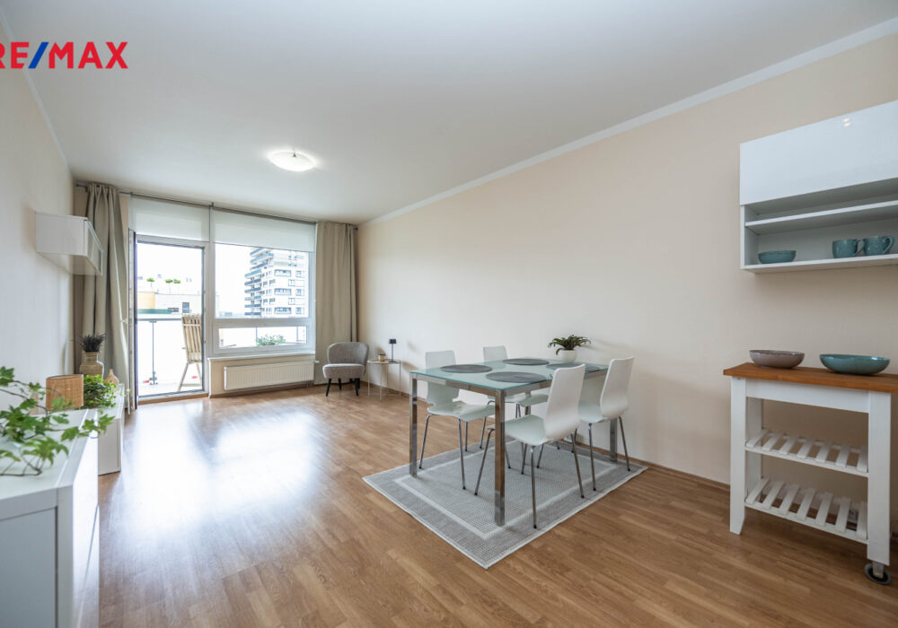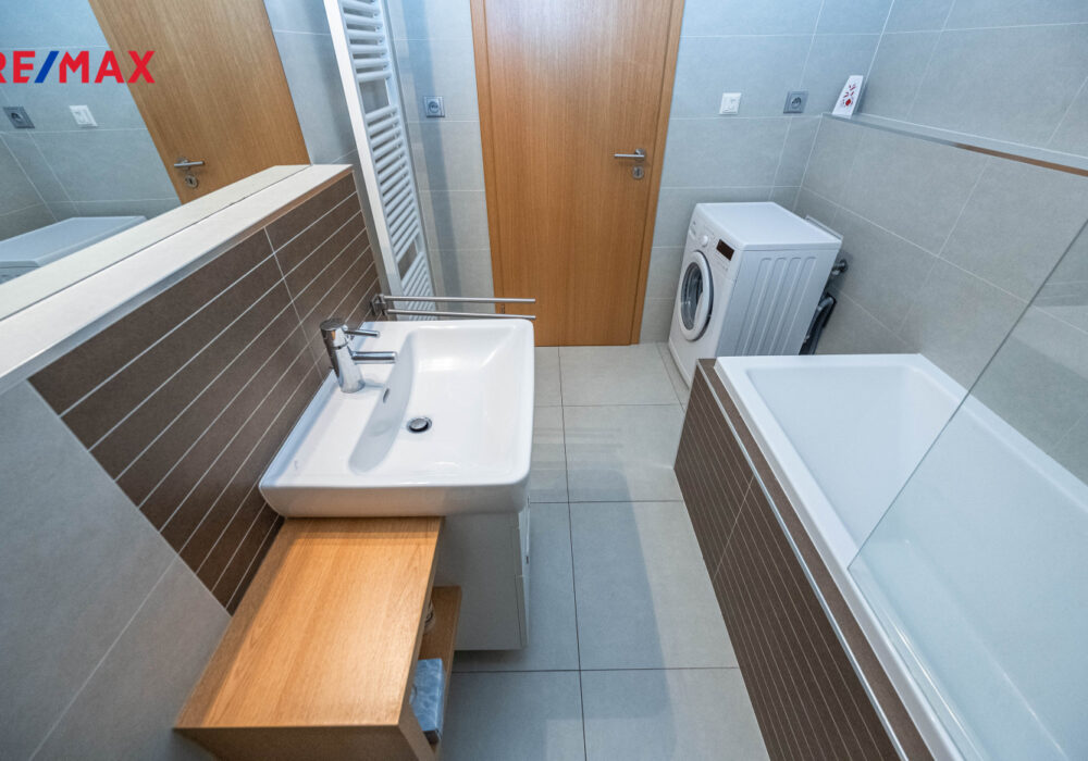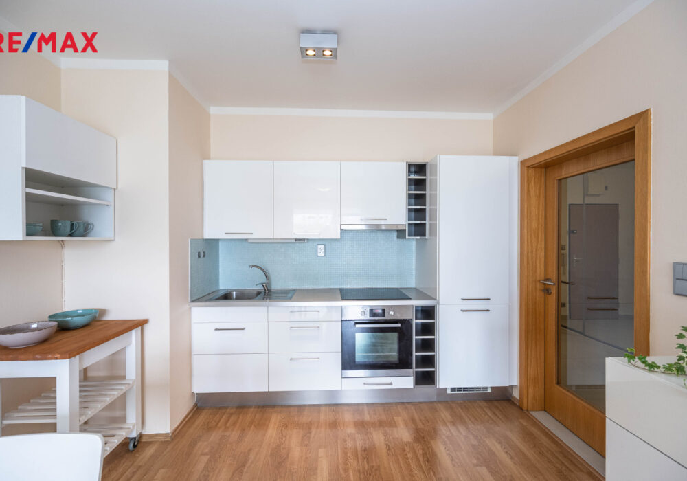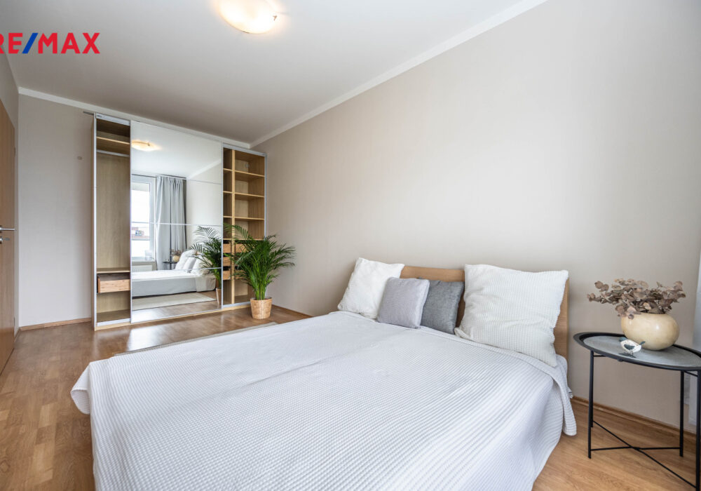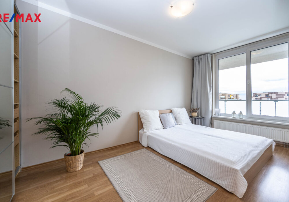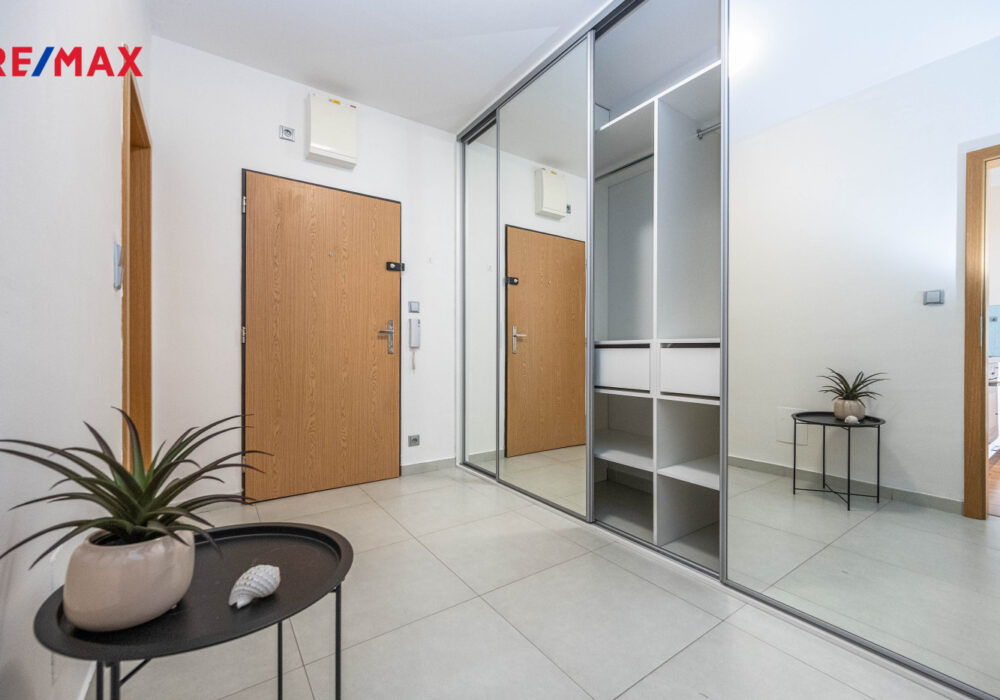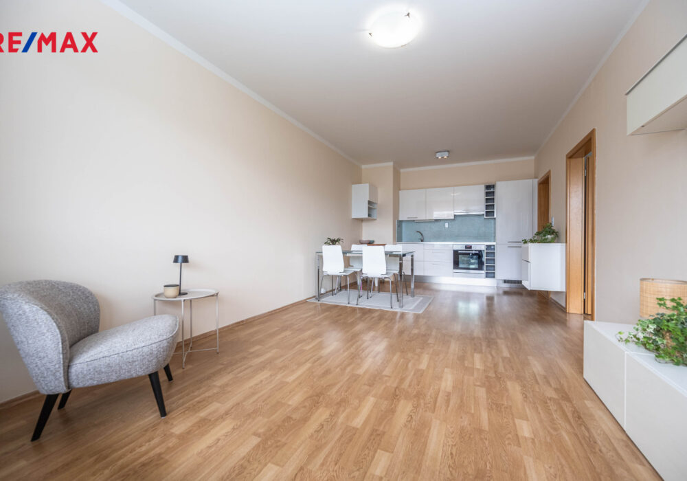 Dispozice nabízí světlý a vzdušný obývací prostor s moderním kuchyňským koutem a vstupem na velkou lodžii, ložnici orientovanou do klidného vnitrobloku s výhledem do parku, velkou vstupní halu s vestavěnou skříní a nadstandardně prostornou koupelnu s vanou a WC.