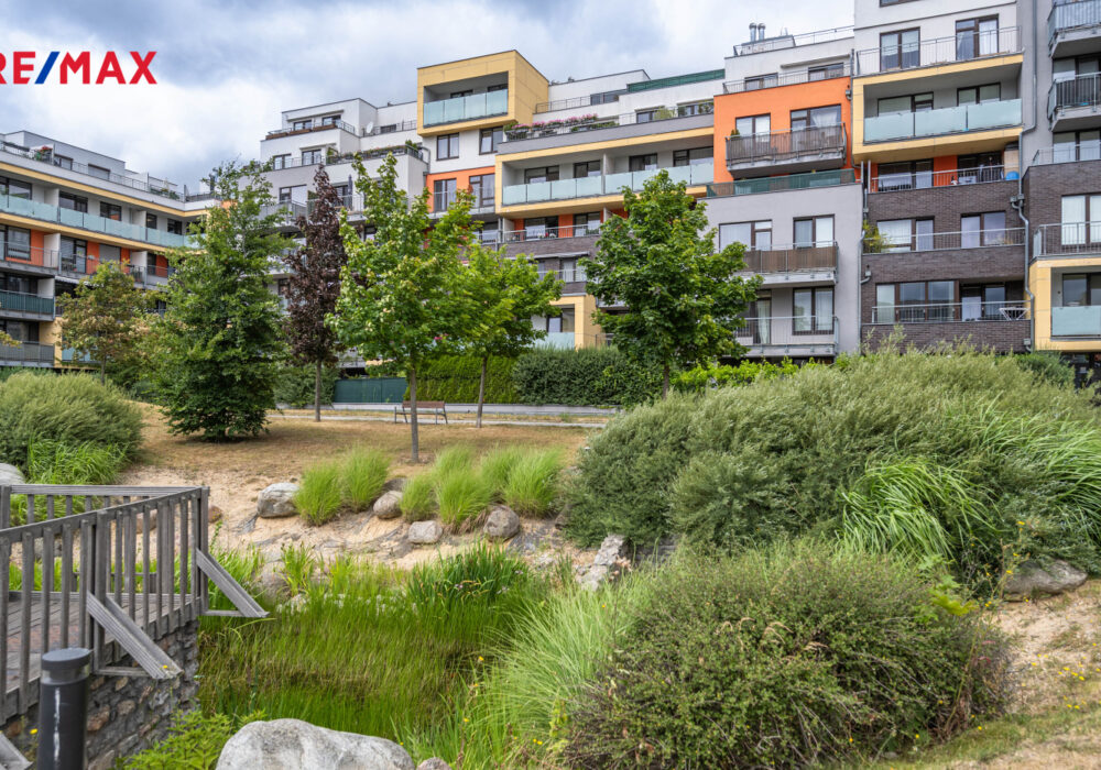 • otevřený výhled ze všech oken do soukromého parčíku s jezírkem, který je přístupný výhradně rezidentům
