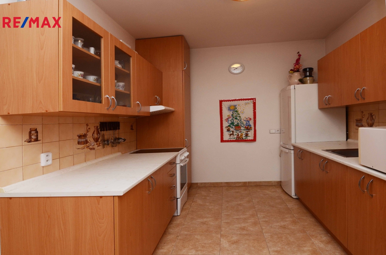 Dominantou tohoto bytu je prostorný obývací pokoj s kuchyňským koutem vybaveným linkou se spotřebiči.