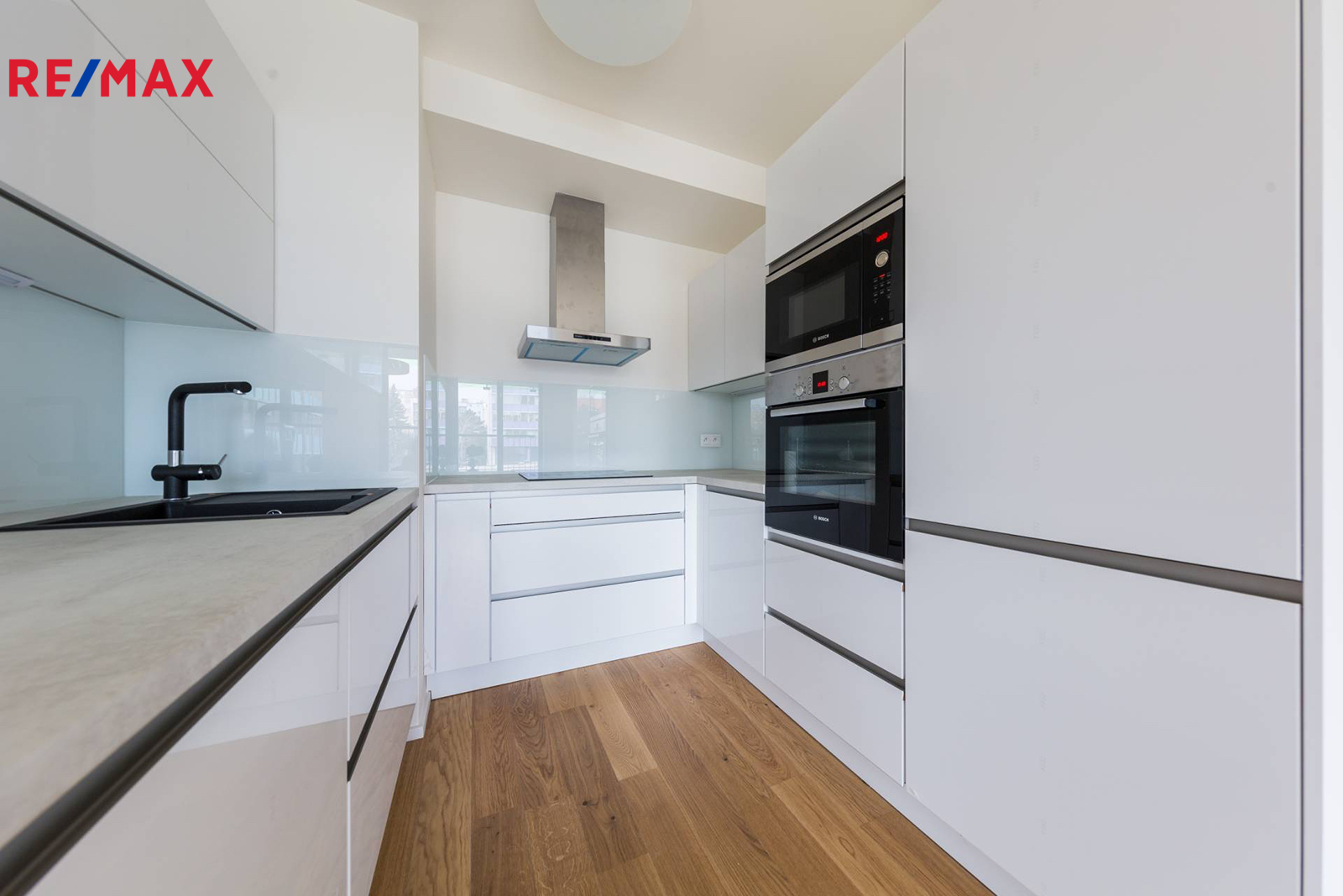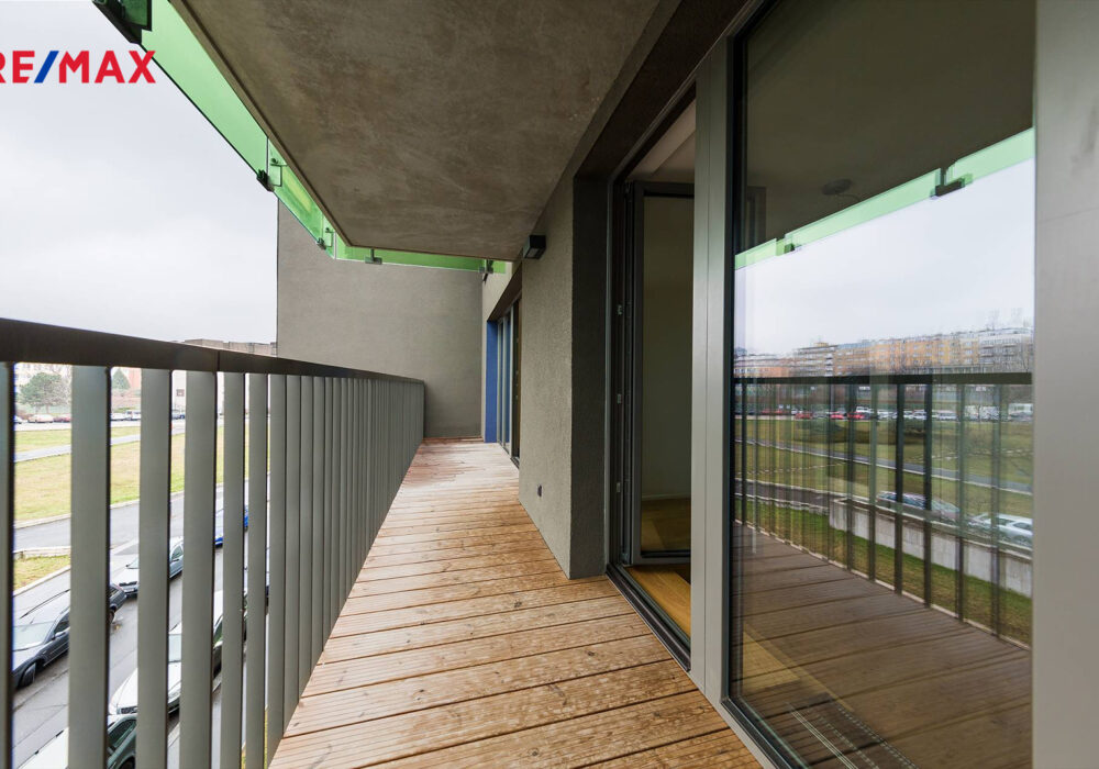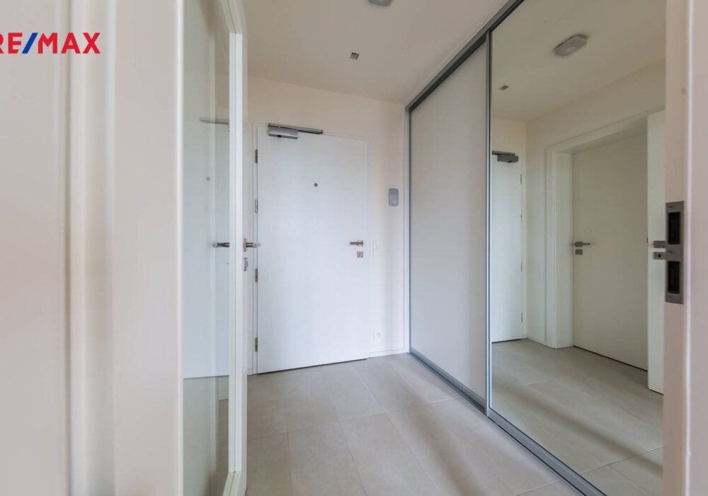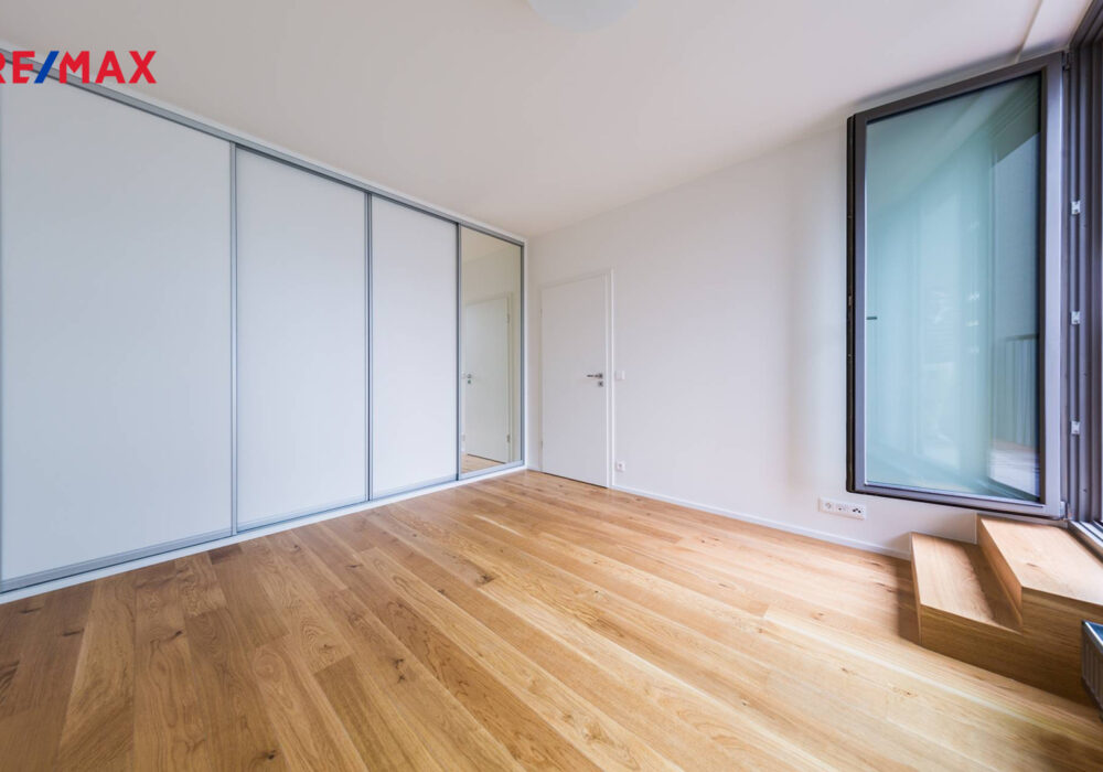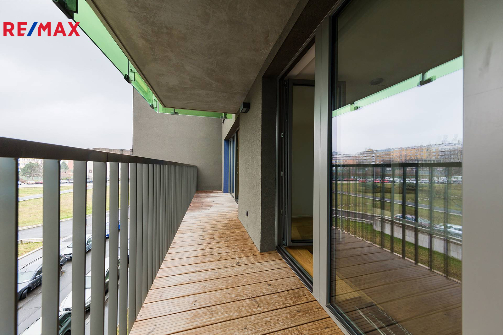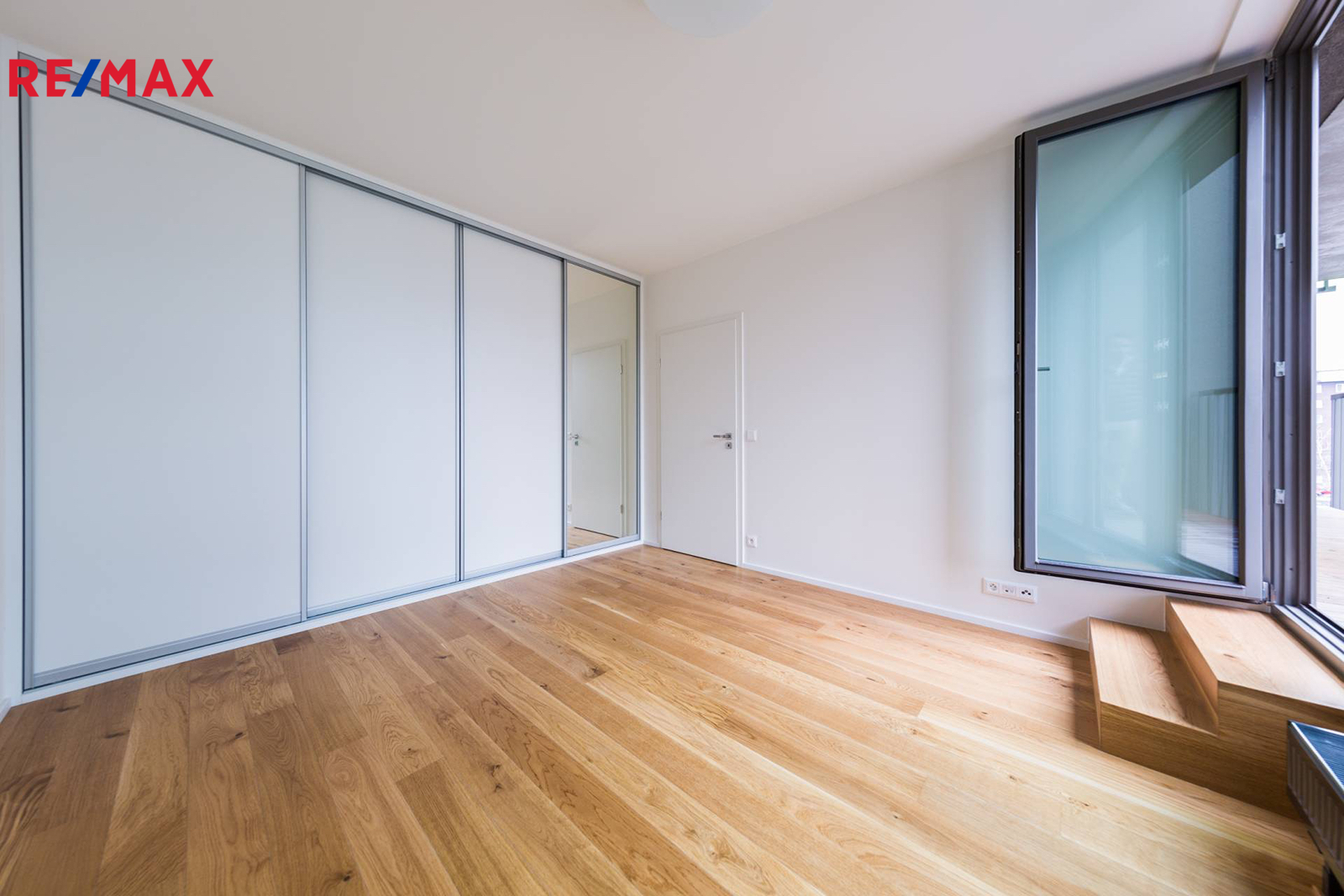 Dovolujeme si vám nabídnout byt v novostavbě projektu 4blok s terasou, garážovým stáním, sklepem a velmi příjemnou atmosférou. Tento prosluněný byt ve 4. patře nabízí dispozici 2+kk, celkovou velikost 63m2 (48m2 byt, 9m2 terasa, 6m2 komora). Na prostornou terasu vedou malebné schůdky z ložnice i obývacího pokoje. Obývací pokoj (23m2) disponuje plně vybaveným kuchyňským koutem – myčka nádobí, varná deska, digestoř, elektrická pečící trouba, mikrovlnná trouba, lednice s mrazničkou (vše značky BOSH), dřez a kuchyňská baterie (Franke), vše doplněno dostatkem pracovní plochy a úložných prostor. Ložnice o velikosti 15m2 má stejně jako obývací pokoj dřevěnou podlahu a je vybavena prostornou vestavěnou skříní s posuvnými dveřmi. Koupelna (4m2) s elegantní sprchovou zástěnou, umyvadlem (Villeroy & Boch), toaletou a topným žebříčkem. Vstupní hala s další vestavěnou skříní, bezpečnostními dveřmi a dlažbou na podlaze. Prostorný sklep/komora náležící k bytu se nachází na stejném patře jako byt a k dispozici je jedno garážového stání.