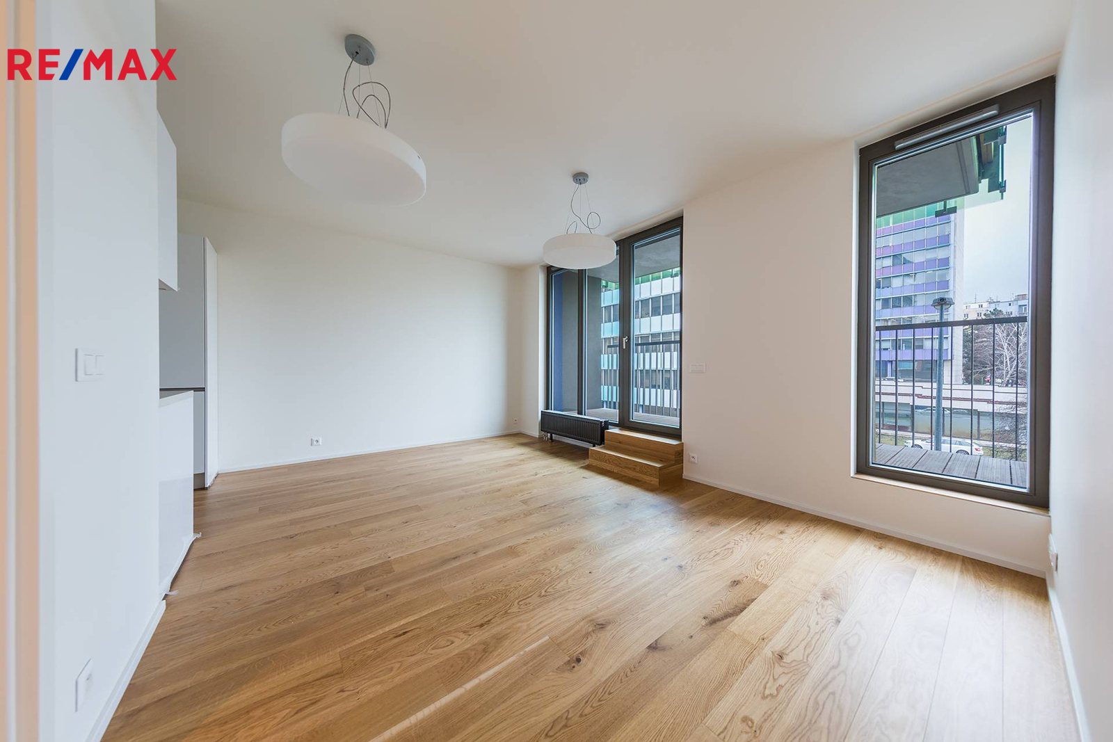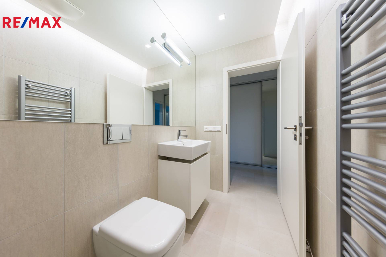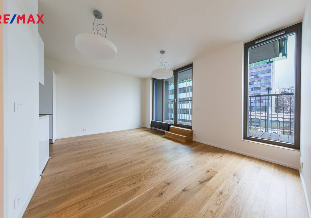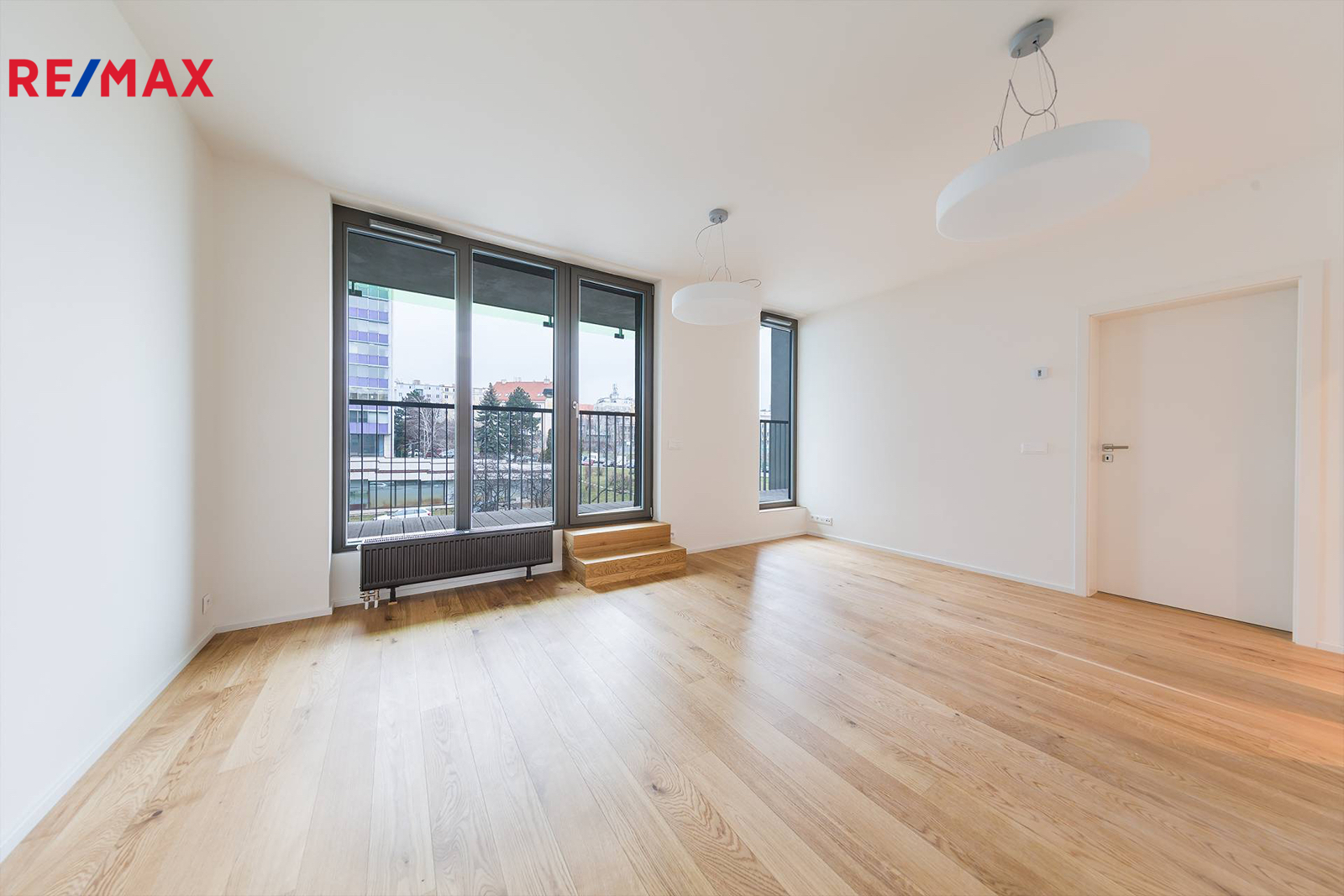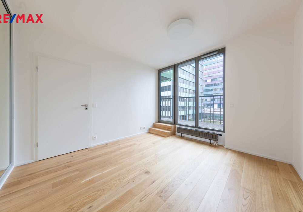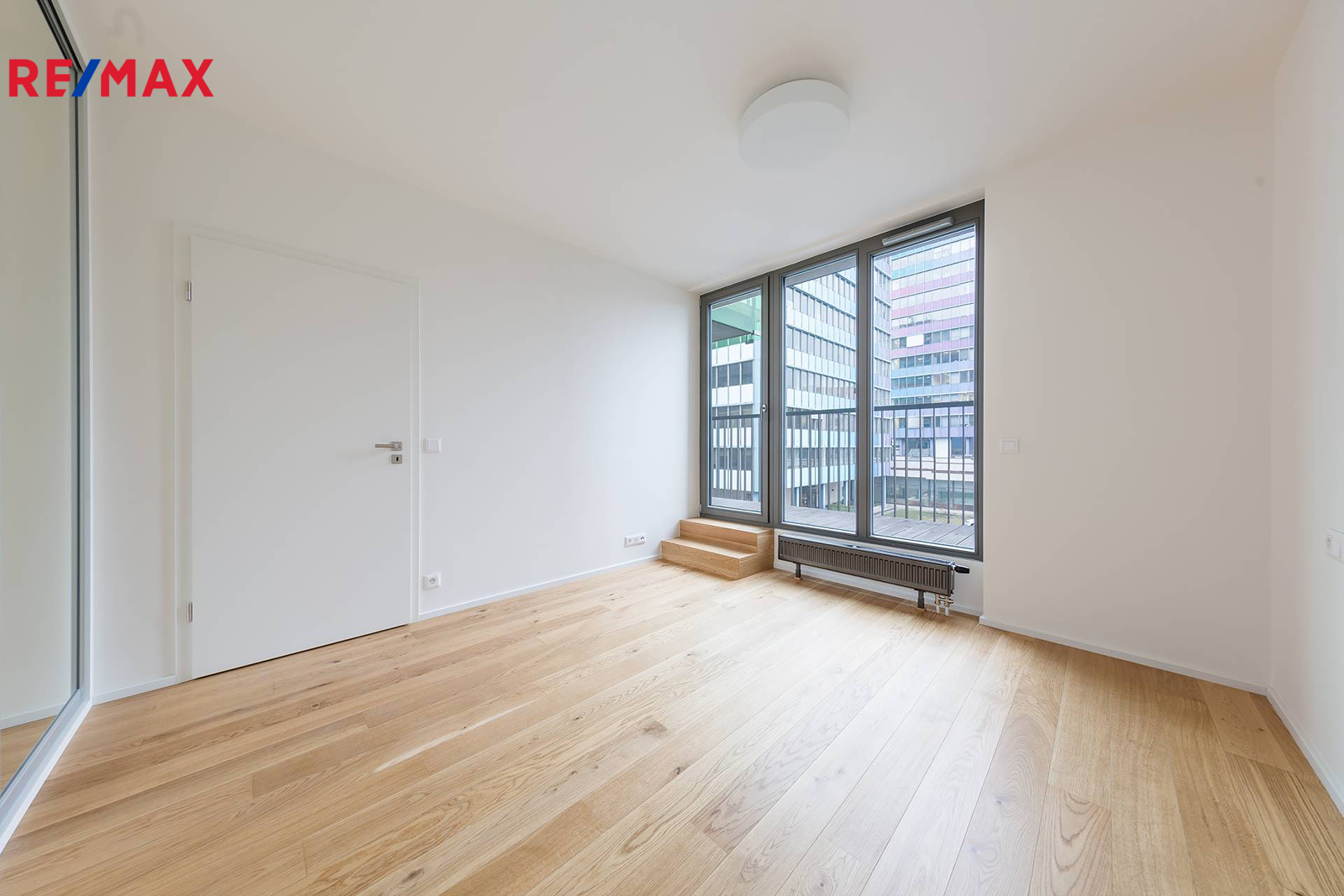 Dovolujeme si vám nabídnout byt v novostavbě projektu 4blok s terasou, garážovým stáním, sklepem a velmi příjemnou atmosférou. Tento prosluněný byt ve 4. patře nabízí dispozici 2+kk, celkovou velikost 63m2 (48m2 byt, 9m2 terasa, 6m2 komora). Na prostornou terasu vedou malebné schůdky z ložnice i obývacího pokoje. Obývací pokoj (23m2) disponuje plně vybaveným kuchyňským koutem – myčka nádobí, varná deska, digestoř, elektrická pečící trouba, mikrovlnná trouba, lednice s mrazničkou (vše značky BOSH), dřez a kuchyňská baterie (Franke), vše doplněno dostatkem pracovní plochy a úložných prostor. Ložnice o velikosti 15m2 má stejně jako obývací pokoj dřevěnou podlahu a je vybavena prostornou vestavěnou skříní s posuvnými dveřmi. Koupelna (4m2) s elegantní sprchovou zástěnou, umyvadlem (Villeroy & Boch), toaletou a topným žebříčkem. Vstupní hala s další vestavěnou skříní, bezpečnostními dveřmi a dlažbou na podlaze. Prostorný sklep/komora náležící k bytu se nachází na stejném patře jako byt a k dispozici je jedno garážového stání.