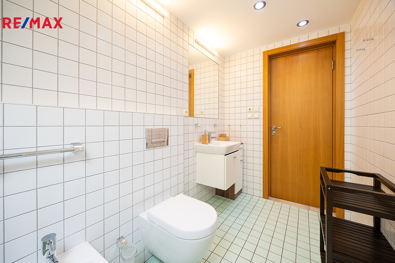 Byt má prostorný obývací pokoj s kuchyňským koutem o rozloze 36m² (45m² celkově), ložnici 13,3m² s vestavnou skříní, koupelnu a předsíň s další vestavnou skříní. Kuchyň je plně zařízena vestavnými spotřebiči Miele. V bytě je nové led osvětlení a plynový kotel za nový kondenzační byl vyměněn před 5 lety. Do celkové podlahové plochy nezapočítáváme prostor nad kuchyní, který se dá využít na přespání nebo jako odkládací prostor.