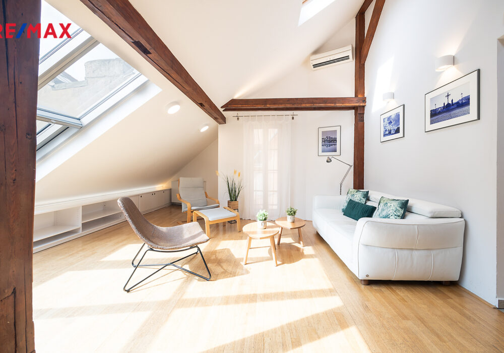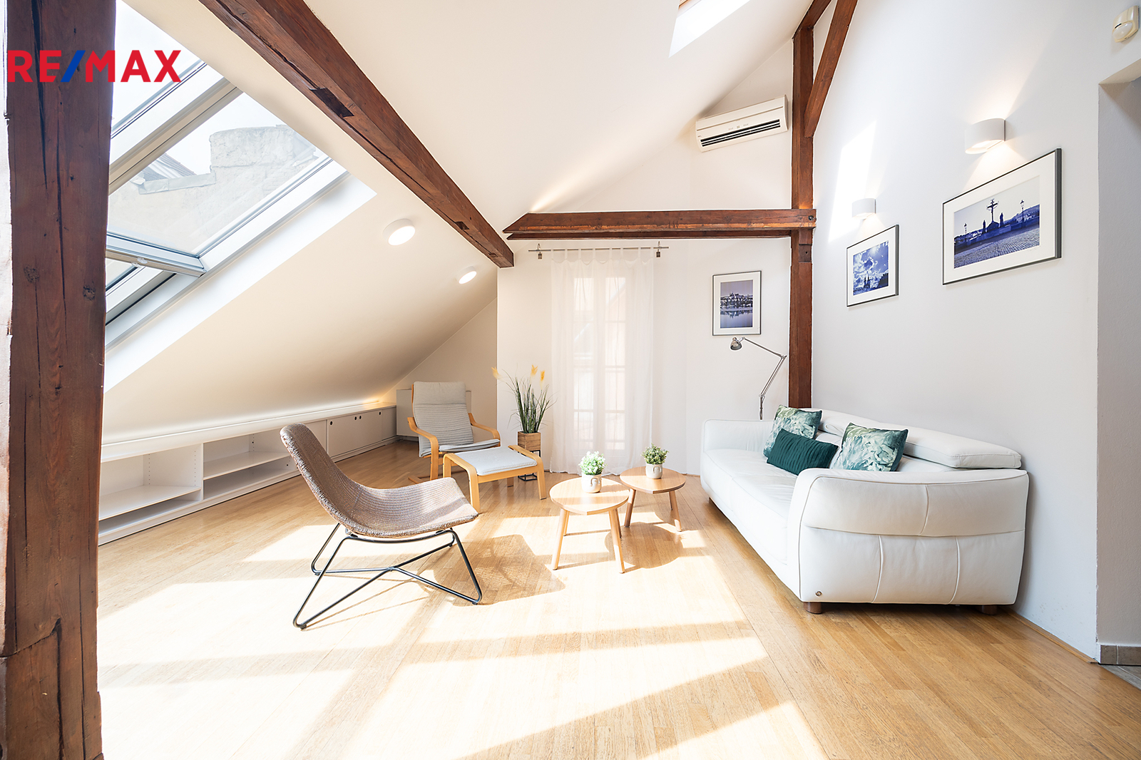 Světlý a útulný půdní byt 2+kk u Staroměstského náměstí