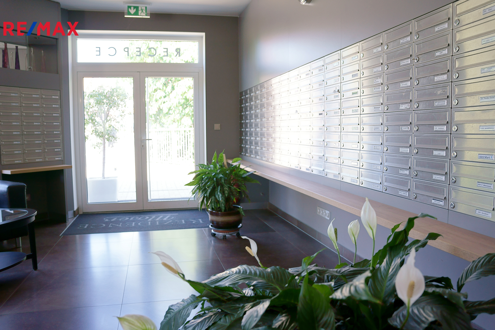 Komfort začíná už u vstupu do areálu rezidence, přes reprezentativní recepci, kde si můžete v klidu přečíst poštu na pohodlném sofa, popovídat si s recepčním nebo jednoduše pokračovat domů. Prostor recepce je však oddělen od vstupů k bytovým jednotkám.