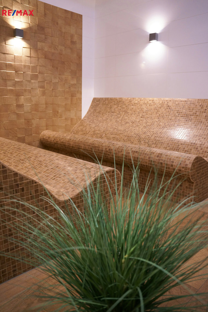 K rezidenci neodmyslitelně patří i bohaté zázemí pro relaxaci a volný čas. Obyvatelé mají k dispozici bazén, saunu i plně vybavené fitness centrum přímo v budově. Okolo celého komplexu se navíc rozprostírá pečlivě udržovaná zeleň, která dotváří klidnou atmosféru. Rezidence tak působí jako samostatné město ve městě.