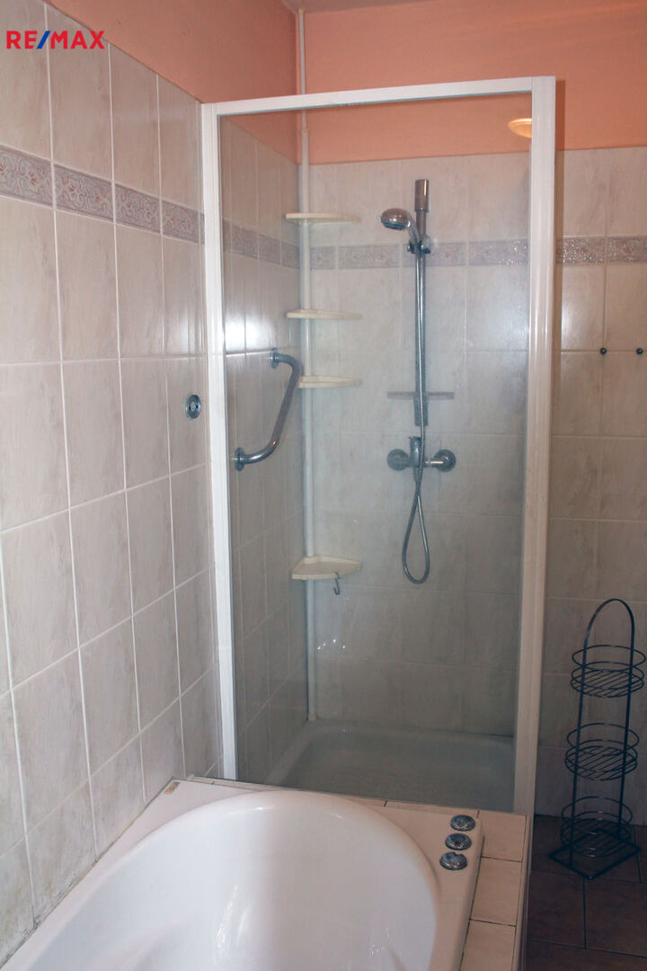 Exkluzivně nabízíme zrekonstruovaný byt o ploše 82,4 m2 v panelovém domě ve 3.patře bez výtahu. Výhodou bytu je prostorná koupelna s vanou s masážními tryskami a i samostatným sprchovým koutem a toaletou. Z předsíně je vstup do druhé toalety s malým umyvadlem, což poskytuje vynikající užitný komfort vícečlenné rodině.