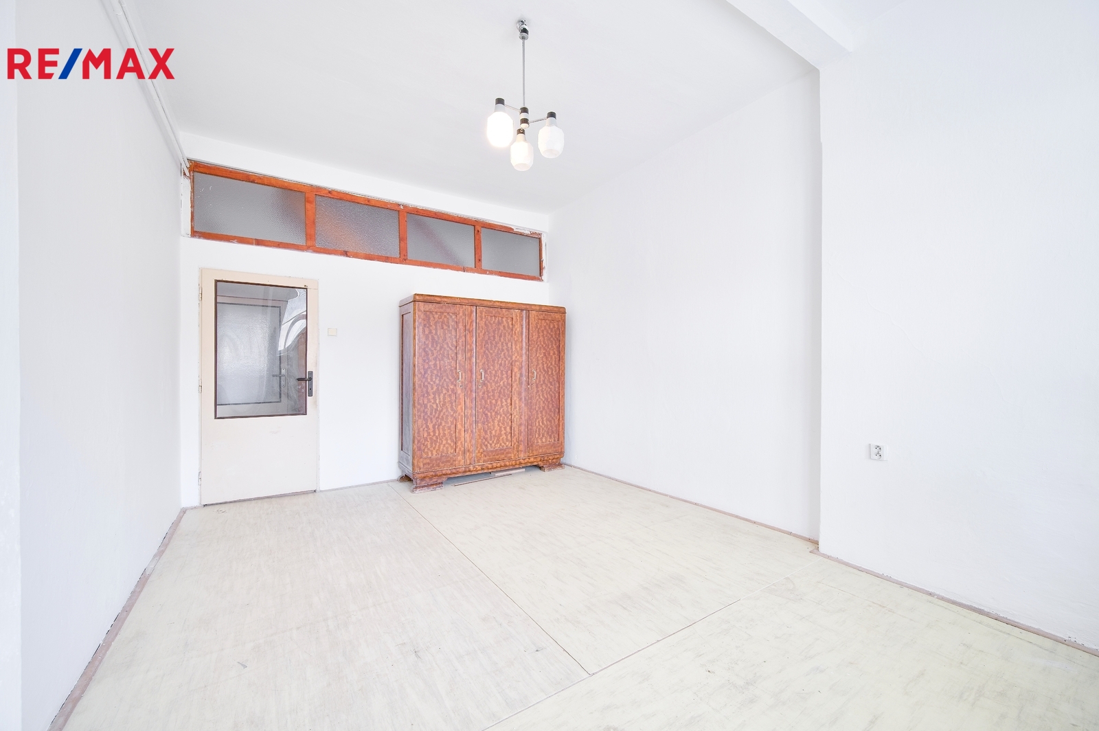 Součástí bytu jsou také původní trámové stropy, které jsou typickým prvkem historických městských domů a podtrhují autentický charakter nemovitosti.