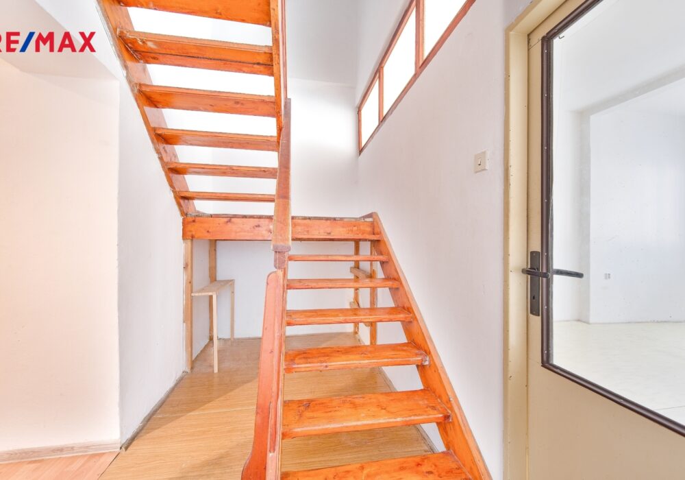 Byt zaujme především velkorysými místnostmi, vysokými stropy a mezonetovým řešením, které dodává interiéru jedinečný charakter. Dřevěné schodiště propojuje obytnou část s podkrovním pokojem, který vytváří útulnou atmosféru a nabízí další prostor například pro ložnici či pracovnu.