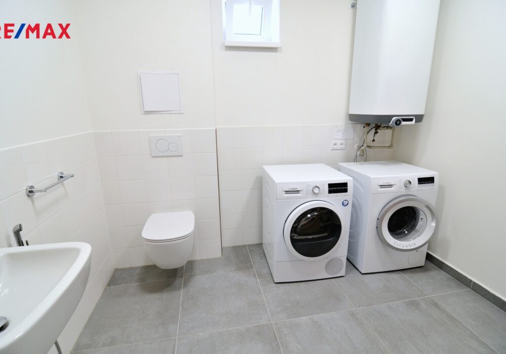 Byt v novém bytovém domě se nachází ve druhém patře (3. n.p.) Oproti úplným novostavbám má výhodu plně vybaveného bytu bez nutnosti další větší investice. V ceně bytu je kuchyňská linka s vestavěnými spotřebiči (lednice, mrazák, myčka, trouba, varná deska, digestoř), barový pultík s lednicí na víno a barová židle. V ložnicích mohou zůstat šatní skříně, ve větší ložnici je dvojpostel s nočními stolky a komodou. V obývacím pokoji rozkládací pohovka, stolek a tv stolek, stůl a 4 židle. V technické místnosti zůstává bojler a může zůstat pračka se sušičkou, v předsíni pak velká komoda.