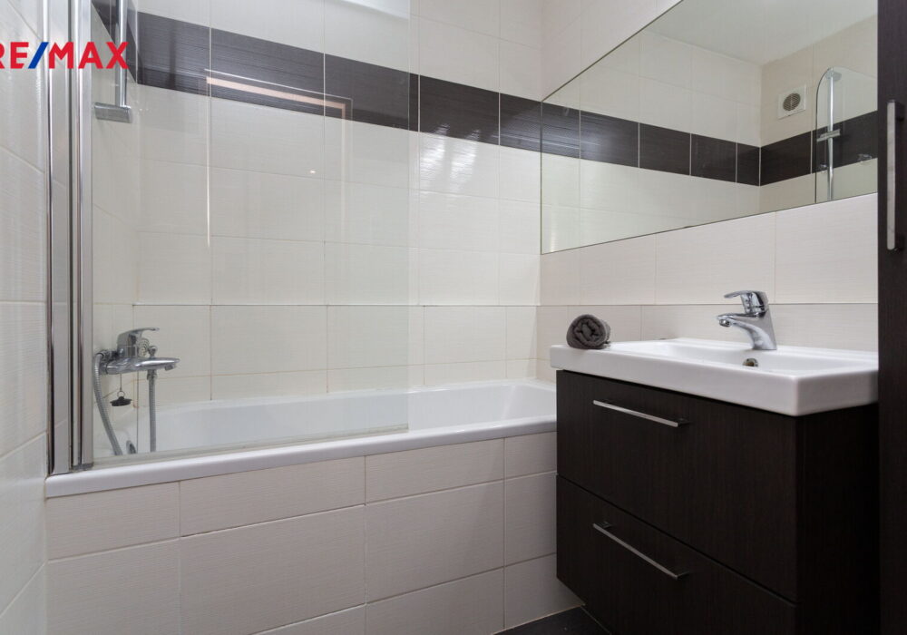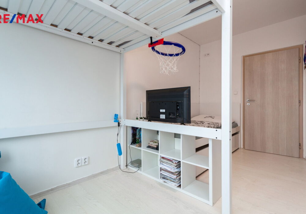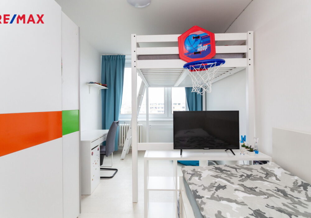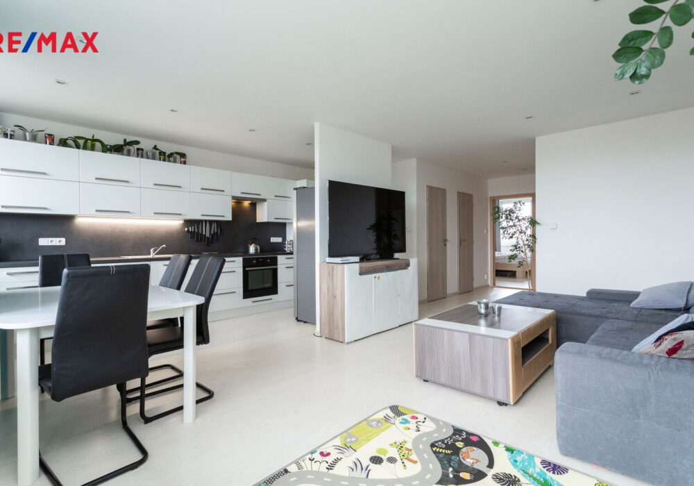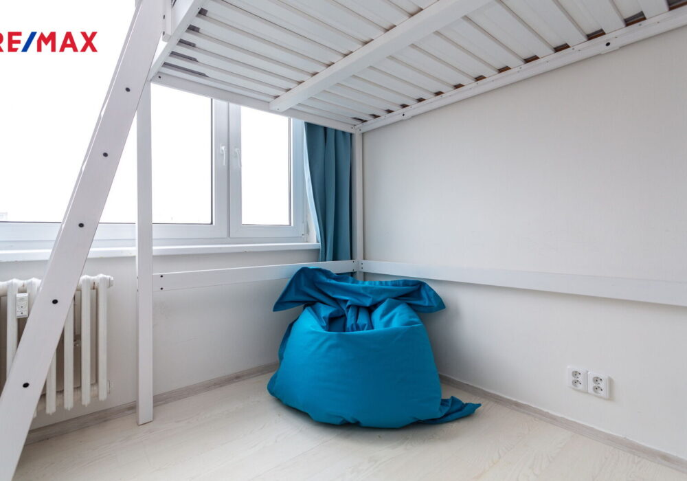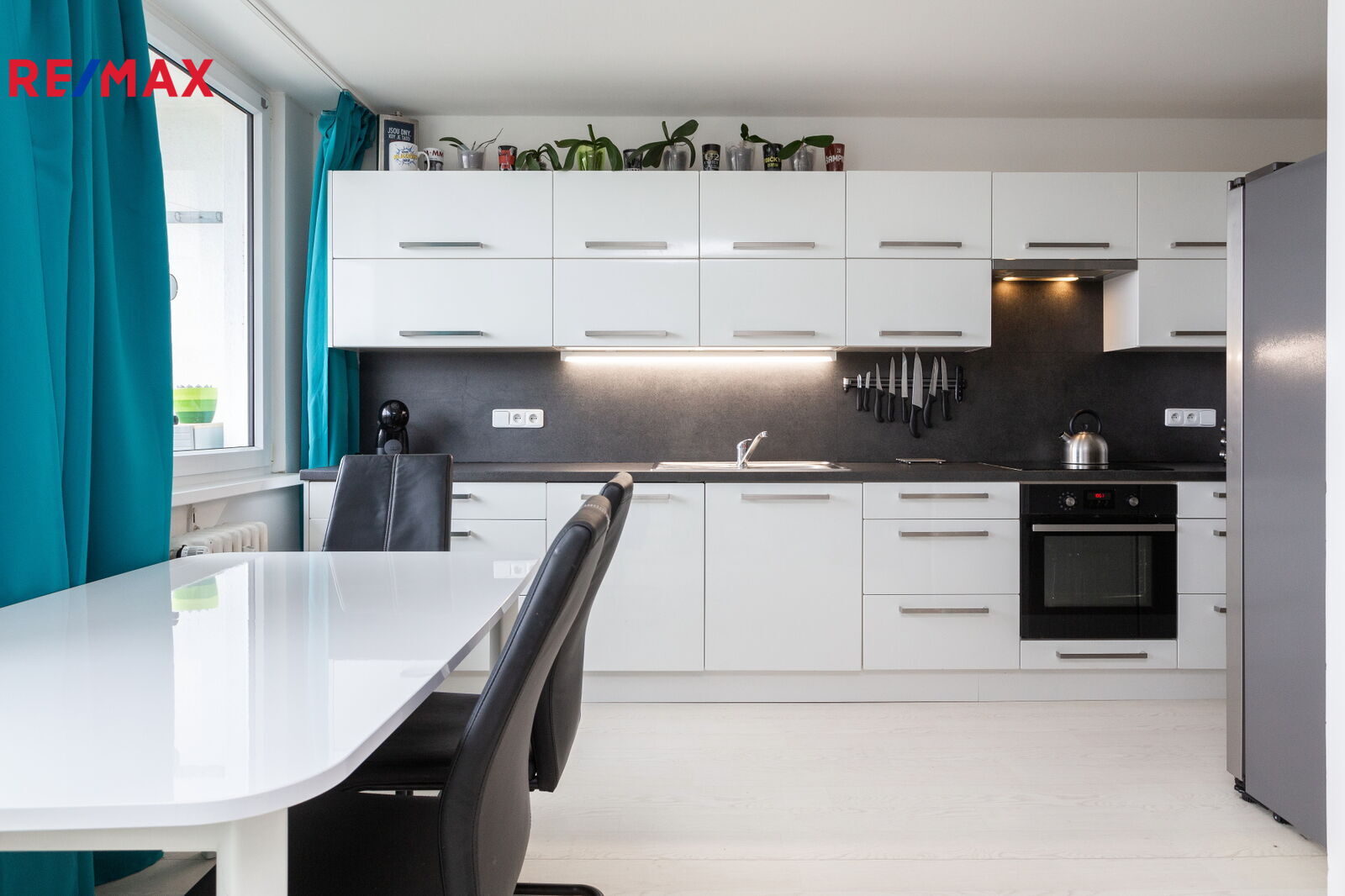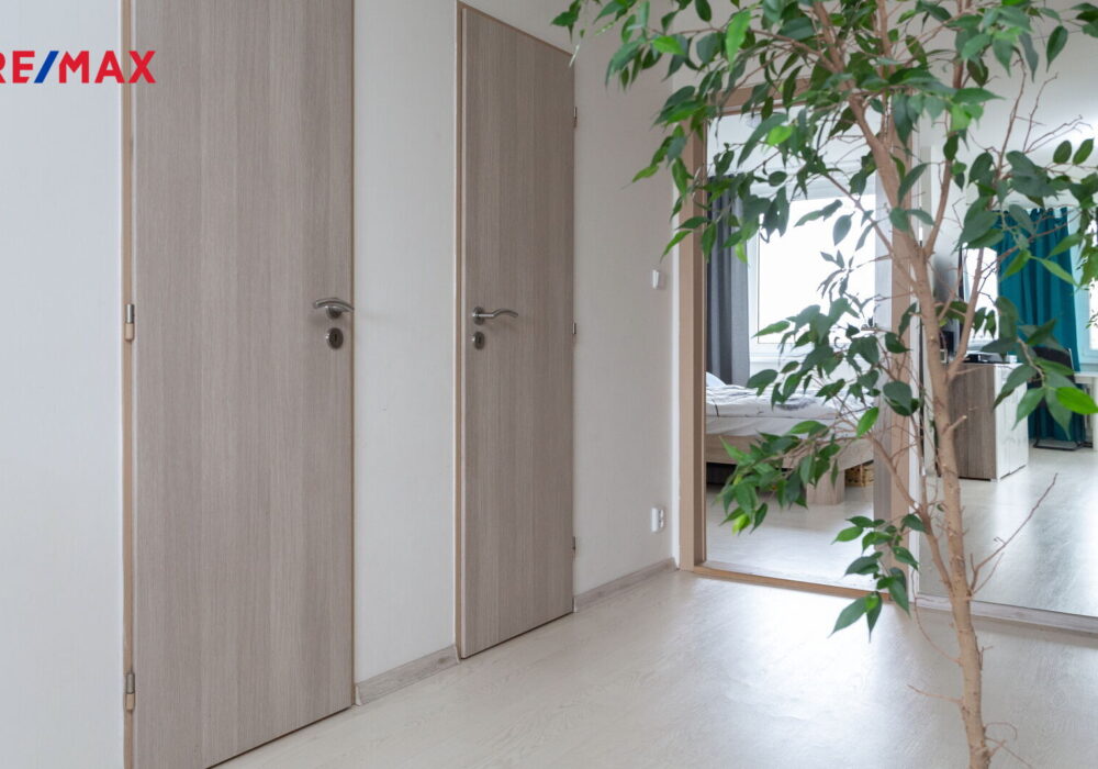 Dispozice bytu: moderní kuchyně s jídelním koutem a prostornou obývací částí a vstupem do prostoru lodžie s výhledem do zeleného vnitrobloku, ložnice, dětský pokoj, prostorná nadstandardní šatna v předsíni, koupelna s vanou a sprchovou zástěnou, samostatná toaleta, sklepní kóje.