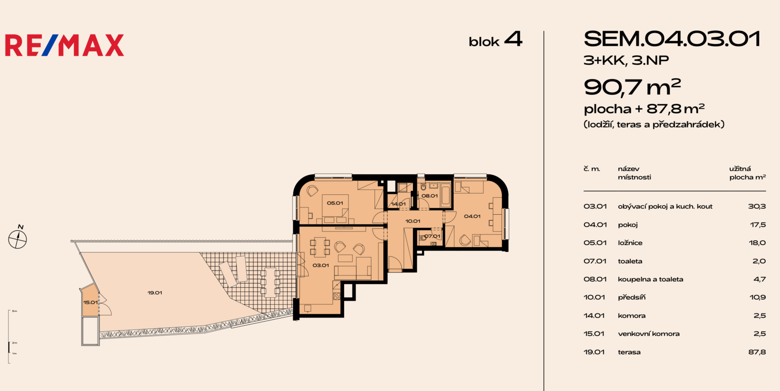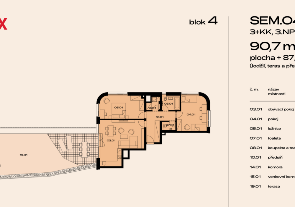 Prodej bytu 3+kk, 179㎡, novostavba, projekt Semerinka
