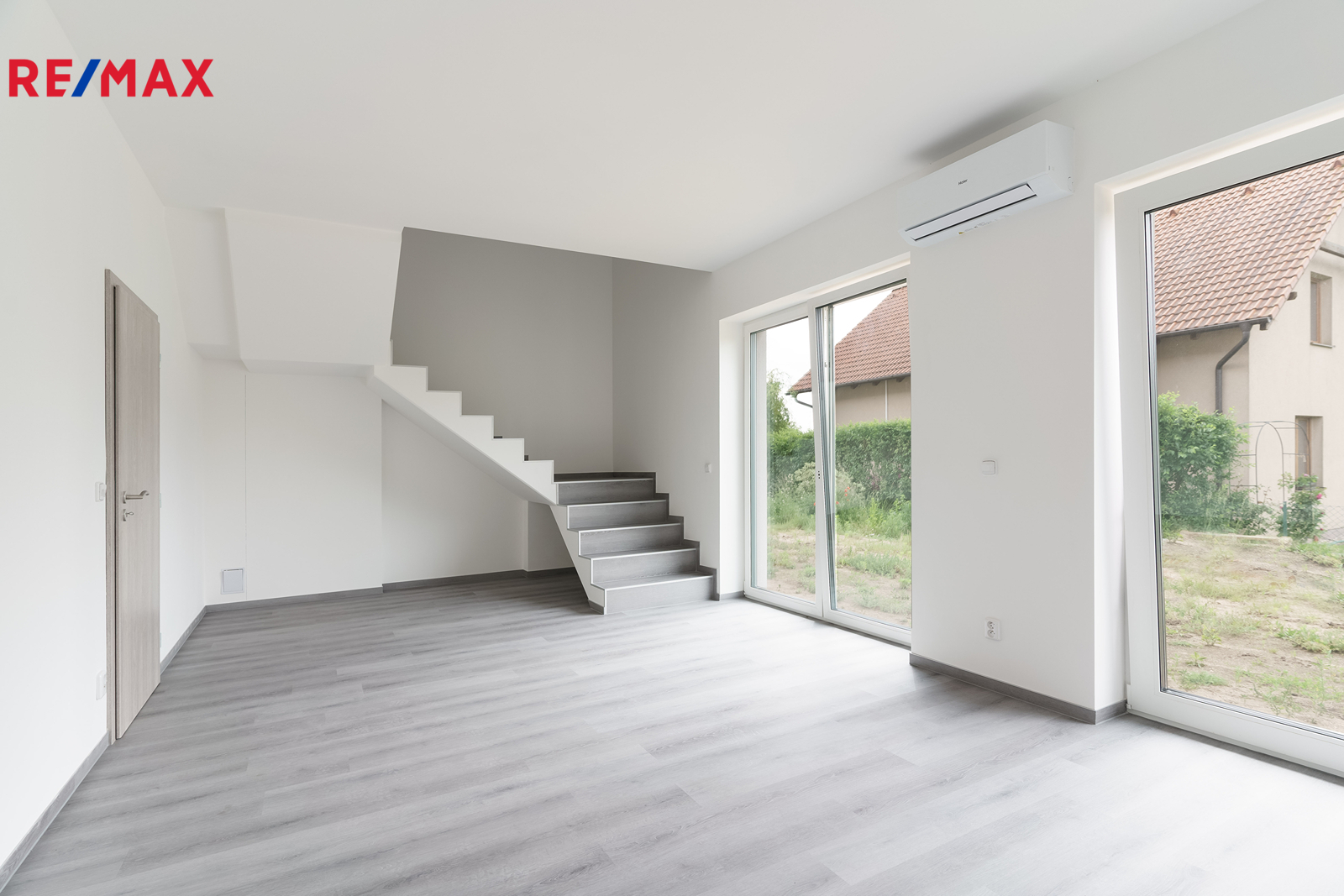 1. NP (36,04 m²) zahrnuje vstupní chodbu, praktickou šatnu, WC a otevřený obývací prostor s kuchyní, přístup na předzahrádku (cca 49m2).