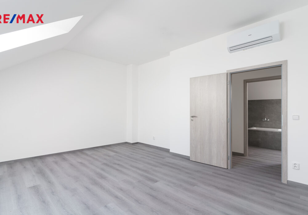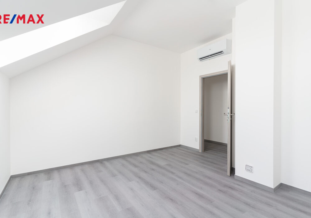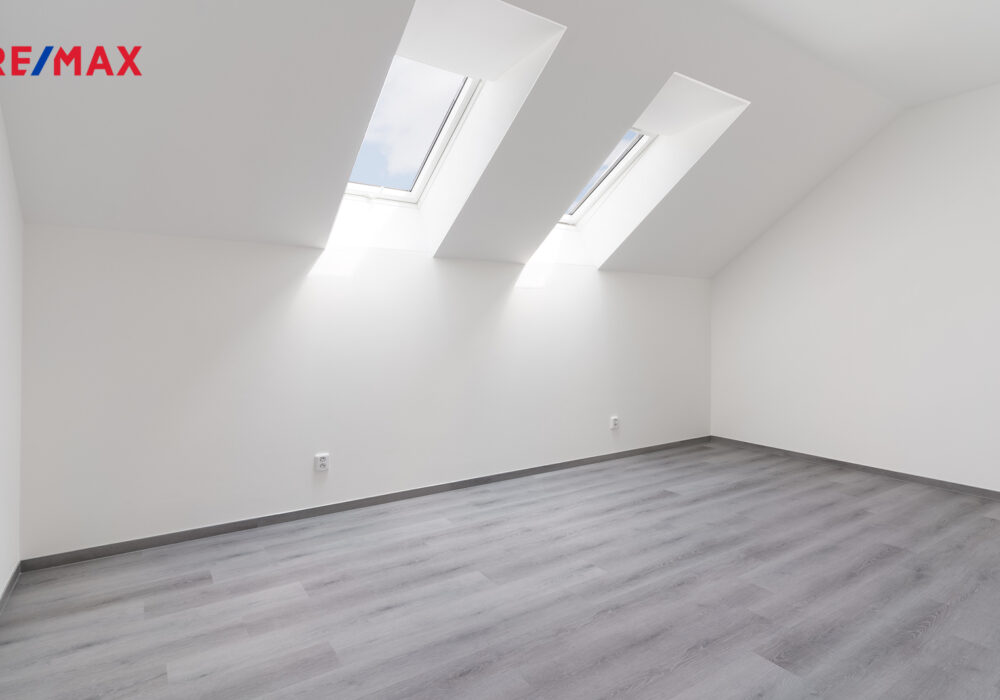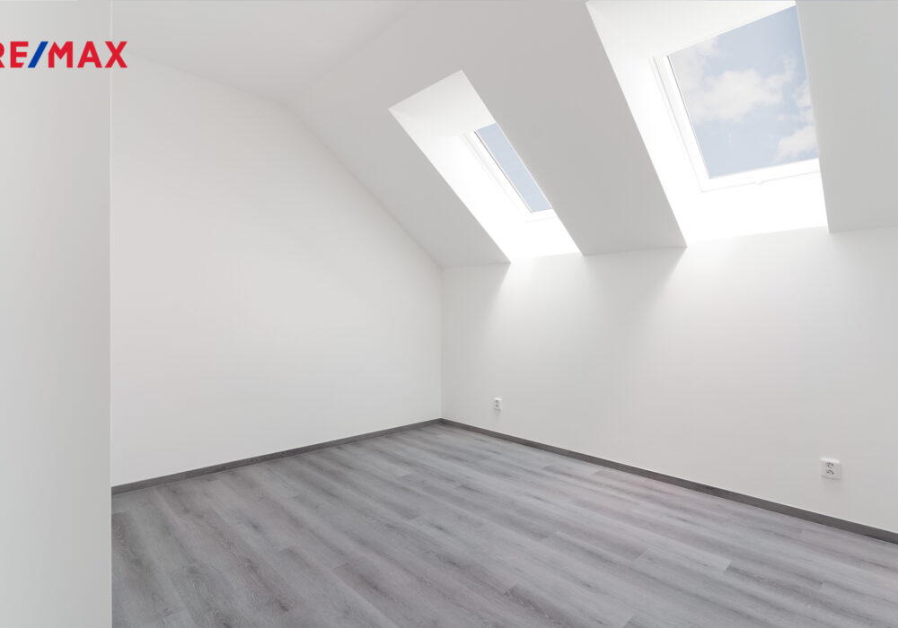 2. NP (54,93 m²) disponuje prostornou ložnicí, dětským pokojem, koupelnou s WC a dvěma šatnami.