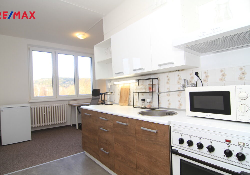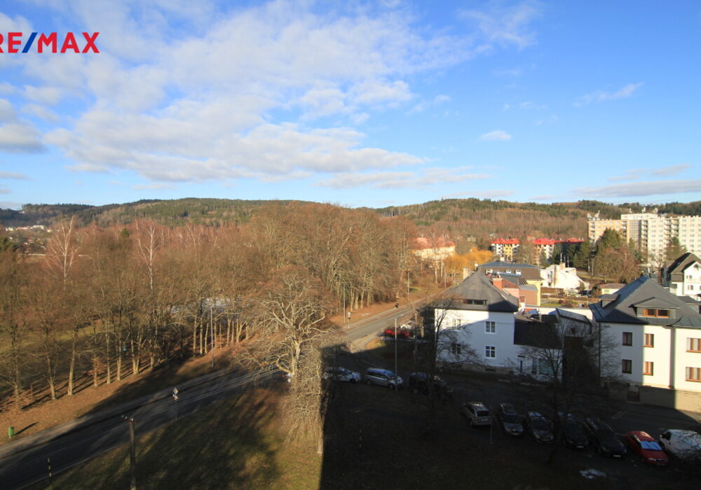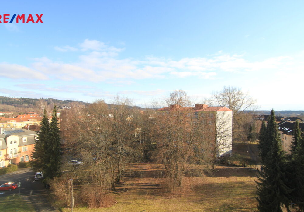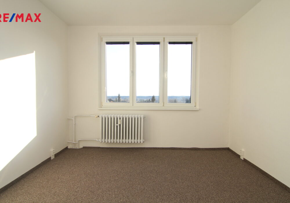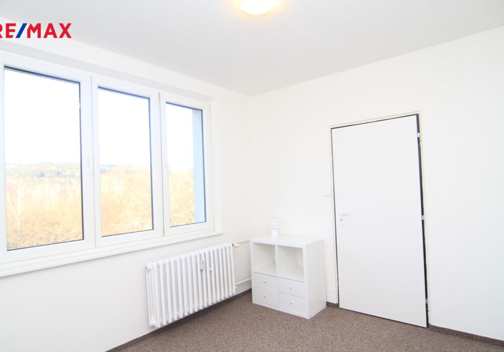 Je to klasický panelový byt 4+1 v posledním patře domu v Úšovicích. A právě to poslední patro je jeho největší výhoda. Nad vámi už nikdo nebydlí a z oken je otevřený výhled směrem na plochou dráhu a okolní krajinu. Je to ten typ výhledu, který člověka večer uklidní. K bytu patří lodžie, takže si ten prostor a výhled můžete užít i venku.