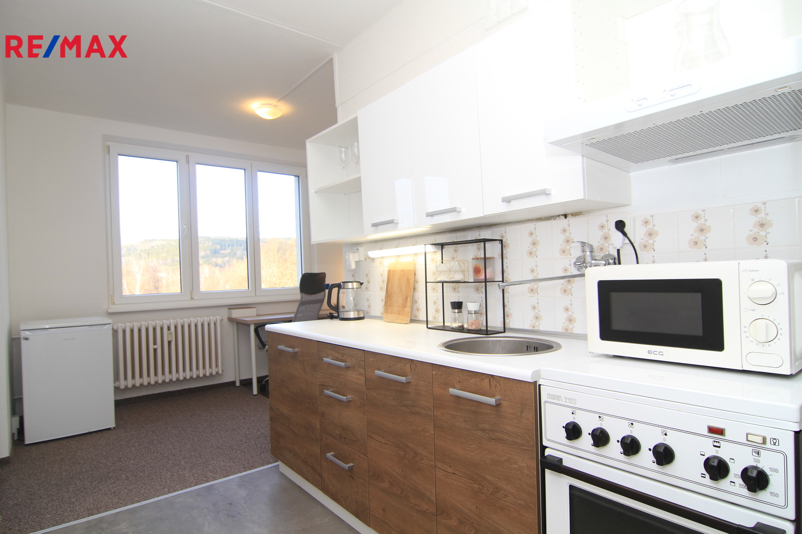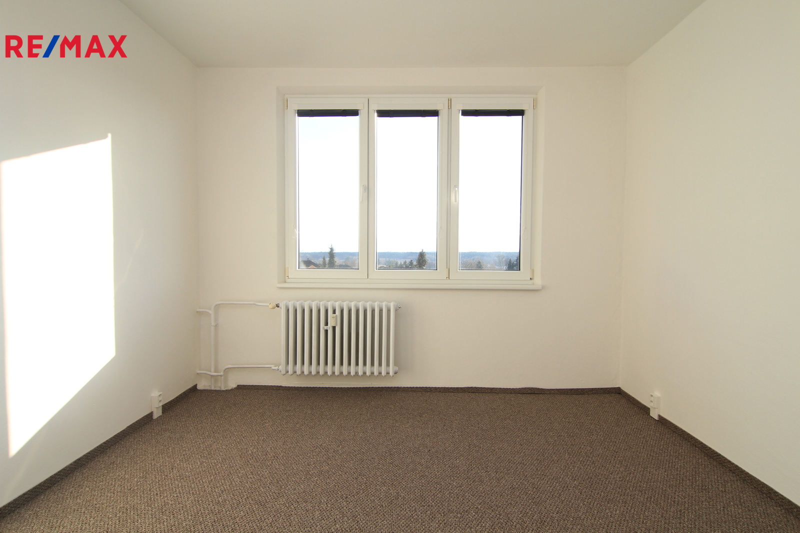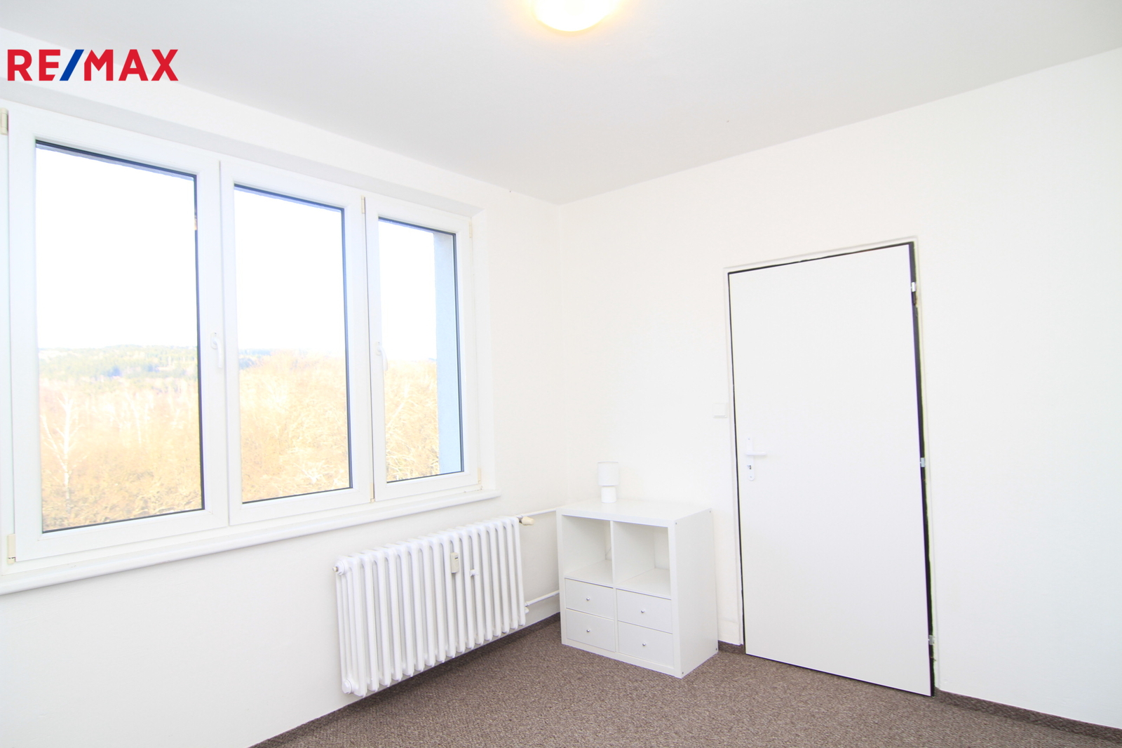 Je to klasický panelový byt 4+1 v posledním patře domu v Úšovicích. A právě to poslední patro je jeho největší výhoda. Nad vámi už nikdo nebydlí a z oken je otevřený výhled směrem na plochou dráhu a okolní krajinu. Je to ten typ výhledu, který člověka večer uklidní. K bytu patří lodžie, takže si ten prostor a výhled můžete užít i venku.