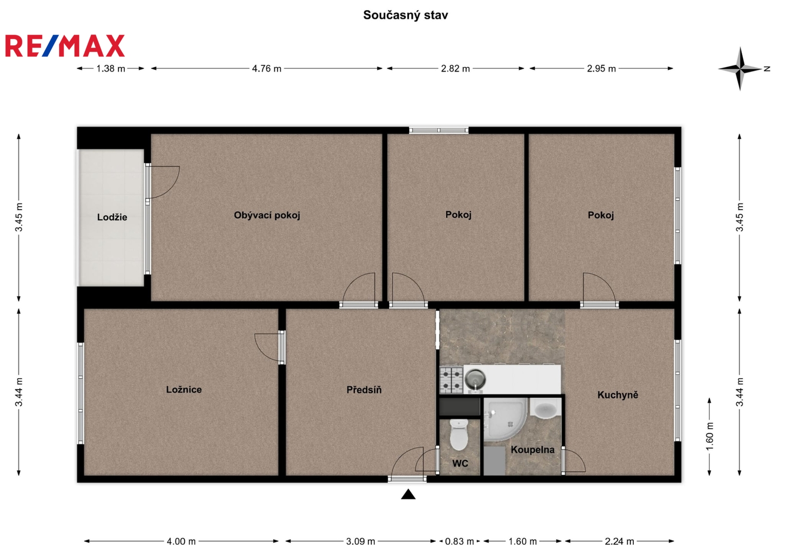 Orientace: ložnice a obývací pokoj s lodžií – jih, prostřední pokoj – západ, kuchyně a vedlejší pokoj – sever