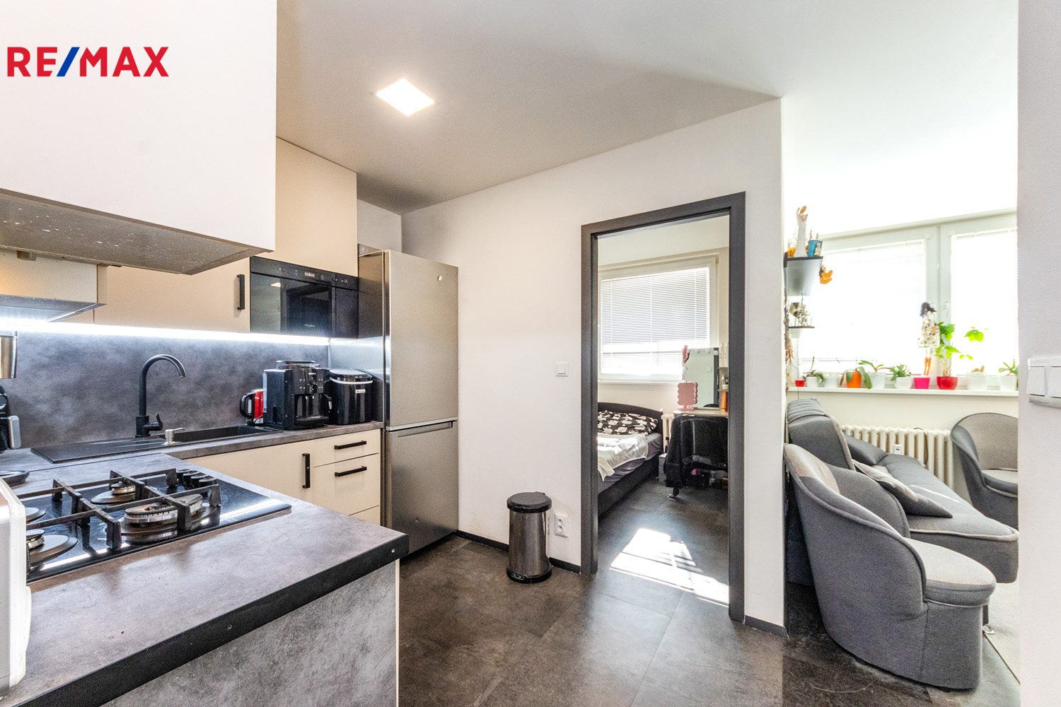 Velkou výhodou je nestandardně velká výměra bytu v rámci lokality. V minulosti byla k jednotce přikoupena část chodby, která je dnes plnohodnotnou součástí bytu – díky tomu nabízí byt větší obytný prostor než většina bytů stejné dispozice v okolí.