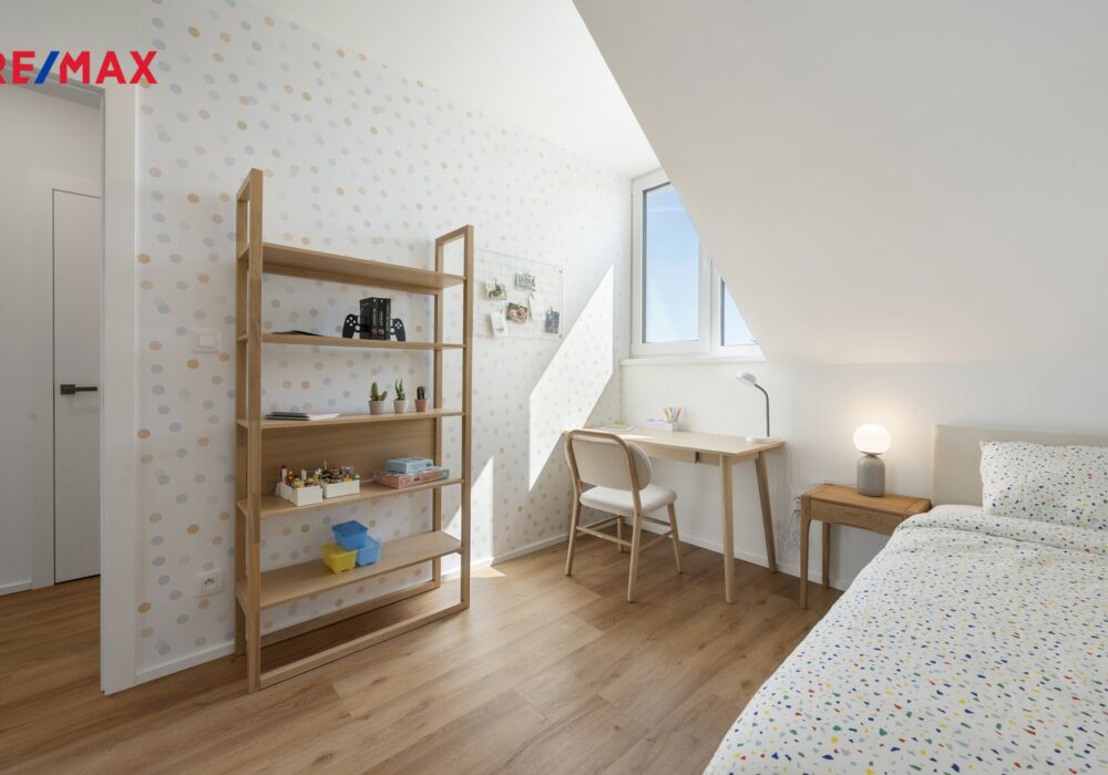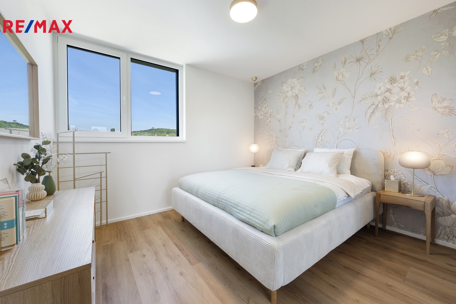 Dvoupatrový jednotka vedená jako bytová je plnohodnotný rodinný dům se vším co od domu člověk očekává. Nabízí promyšlenou dispozici 5+kk – čtyři samostatné pokoje, prostorný obývací pokoj s kuchyňským koutem, dvě koupelny a technickou místnost. Celková podlahová plocha činí 112.8 m². K domu náleží pozemek před domem pro parkování dvou automobilů a pozemek za domem, kde se nachází terasa o velikosti 35 m². Parkování je doplněno wallboxem pro dobíjení elektromobilu.