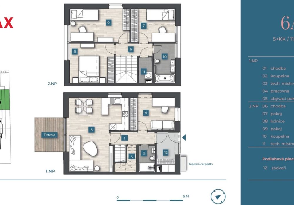 • dispozice 5+kk s podlahovou plochou 112.8 m²