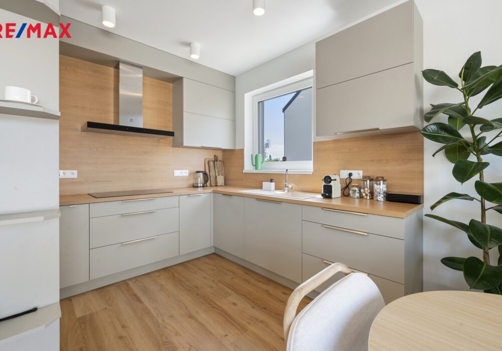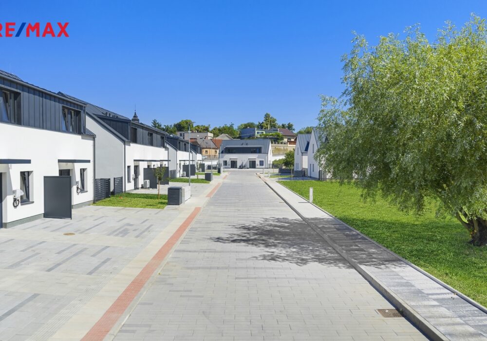 Každý dům nabízí do detailu promyšlenou dispozici 5+kk – 4 samostatné pokoje, obývací pokoj s kuchyňským koutem, 2 koupelny a technickou místnost. Venku posedíte na terase či na zahradě a před domem zaparkujete až dva své vozy.