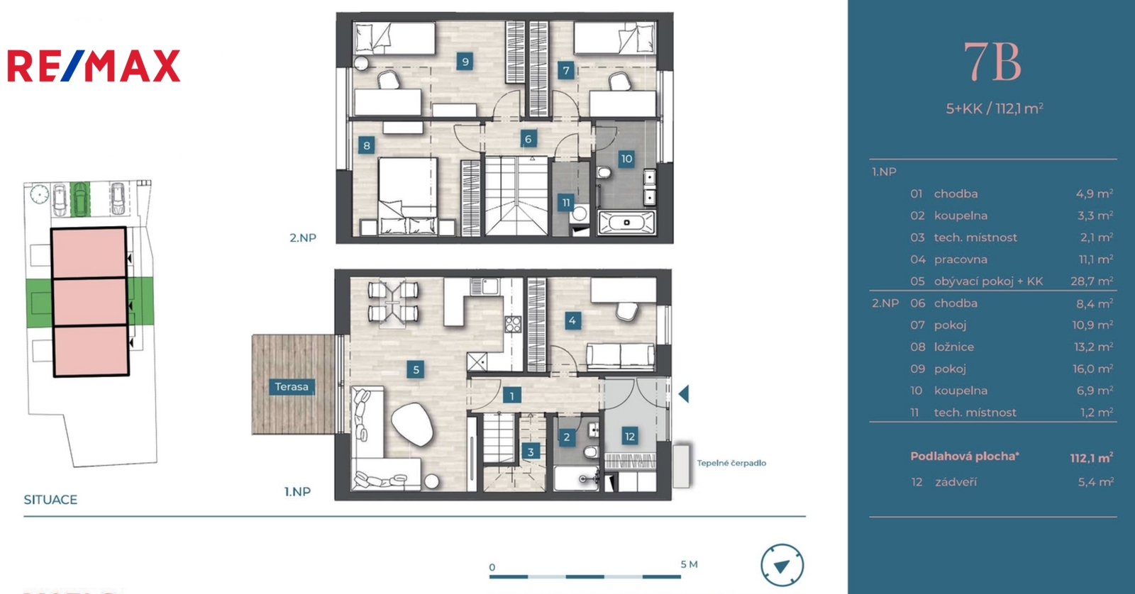 Prodej nové bytové jednotky 5+kk, terasa, 1x parking.