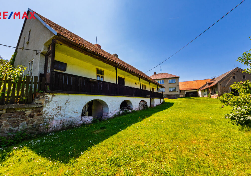 Menší jednopatrový venkovský dům (užitná plocha 105 m²) s půvabnou dřevěnou verandou čeká na rekonstrukci, ale nabízí nezaměnitelnou atmosféru starých časů – ideální pro milovníky stylového venkovského bydlení.