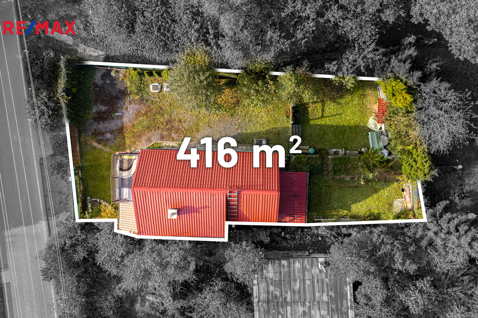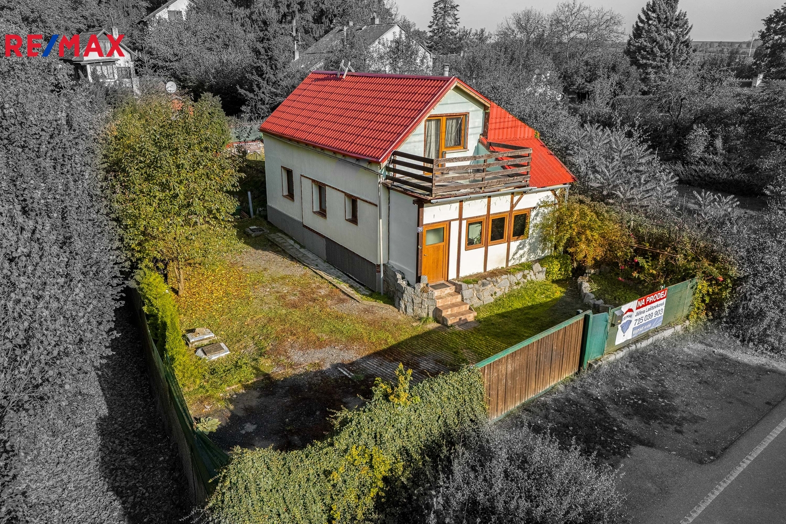 Chata leží na převážně na rovinatém pozemku o velikosti 416 m2. Příjezd je bezproblémový po asfaltové komunikaci, parkování je možné buď na pozemku, nebo před vstupní bránou. Celý pozemek je oplocený a nabízí absolutní soukromí. Chata je napojena na elektřinu, odpady jsou řešeny jímkou a vytápěna je novým elektrickým kotlem, voda je přivedena z vlastní studny. Prodávána je včetně veškerého vybavení.