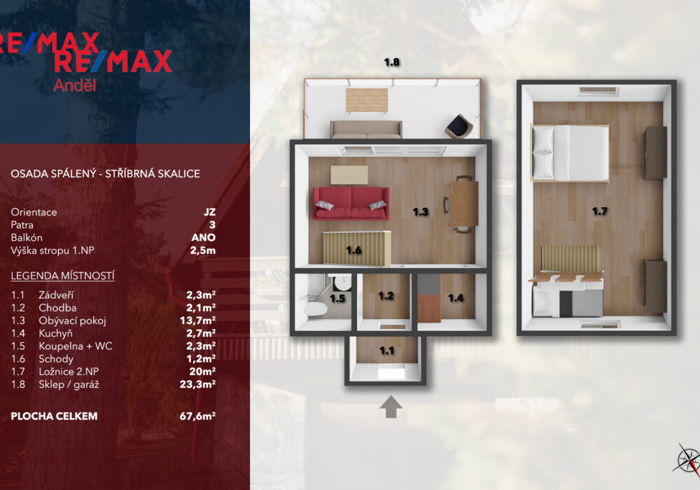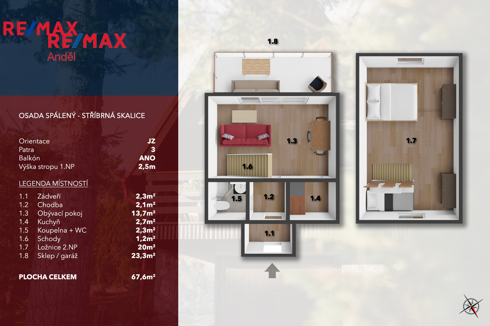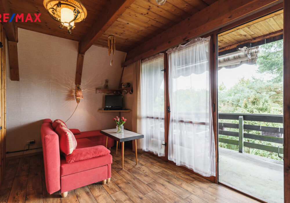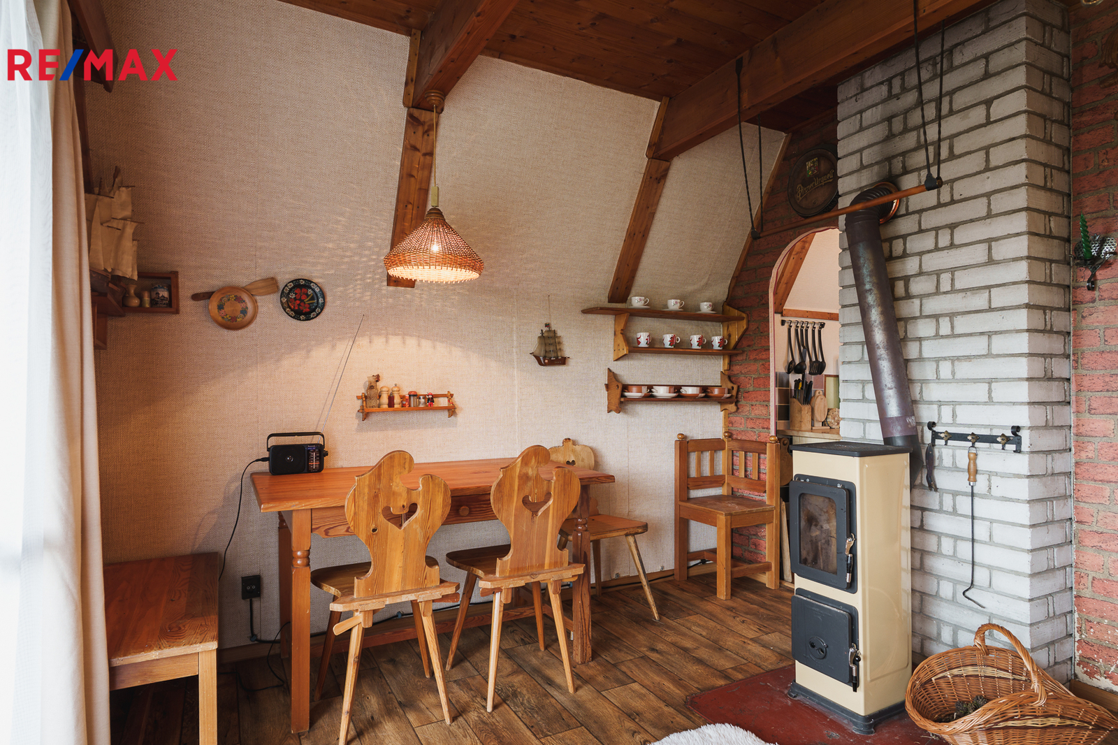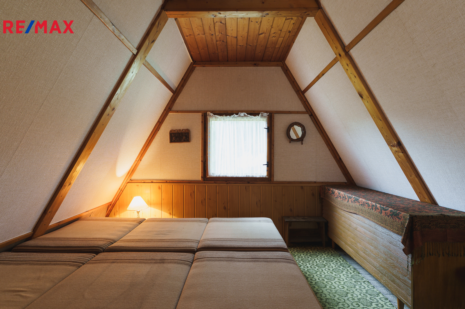 Chata má podlahovou plochu 67,6 m² a stojí na vlastním pozemku o výměře 398 m². V prvním patře najdete společný prostor s kuchyní, jídelním koutem a vstupem na prostornou terasu, kde si můžete vychutnat krásné západy slunce. Po schodech nahoru se dostanete do druhého patra s 1 ložnicí, rozdělenou na dvě části.