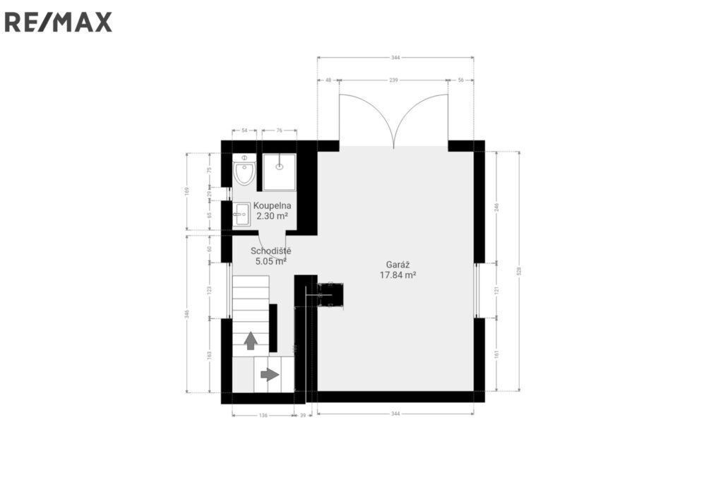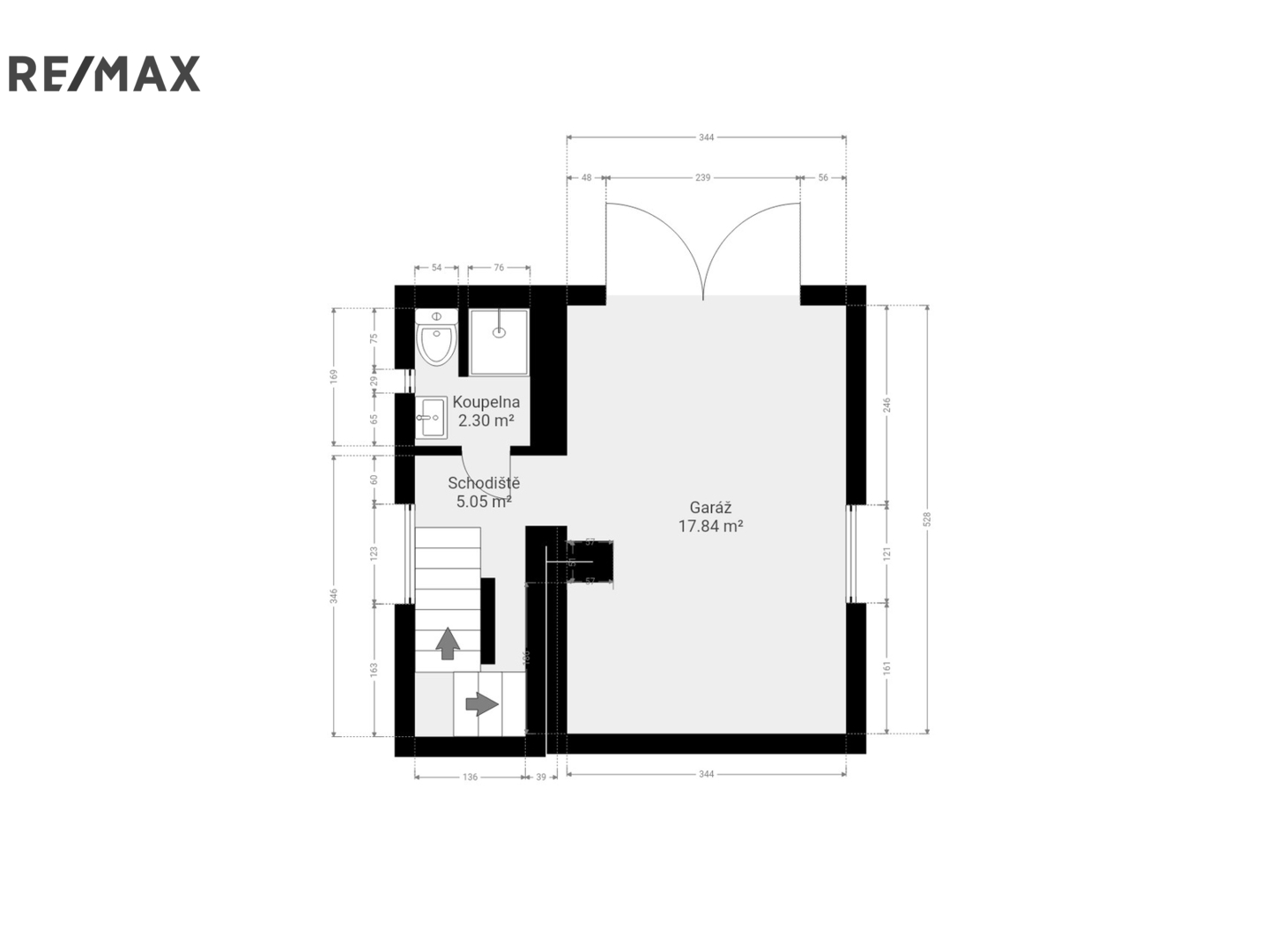 Přízemí: Obytná garáž, sprchový kout s WC.