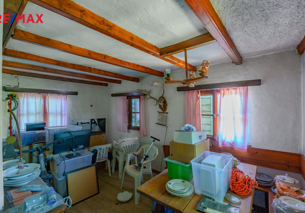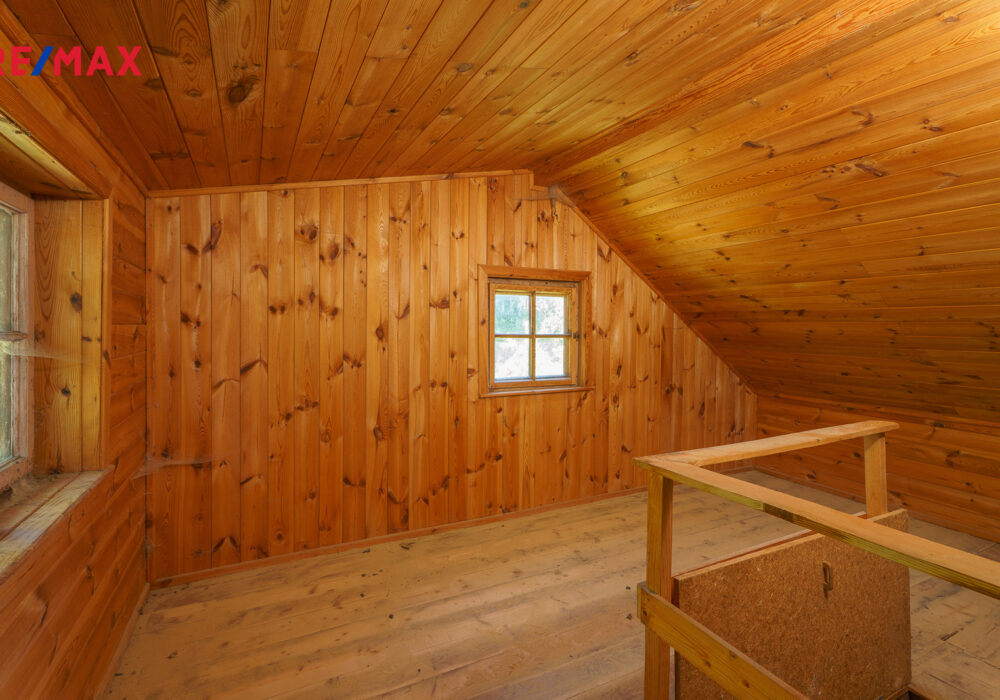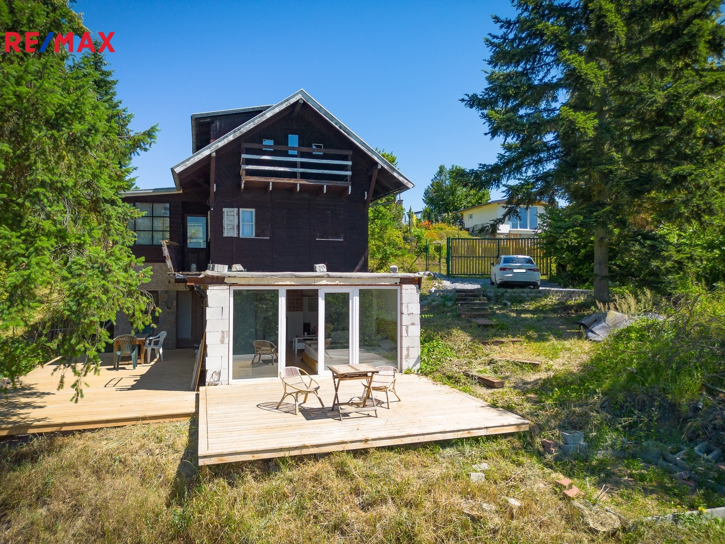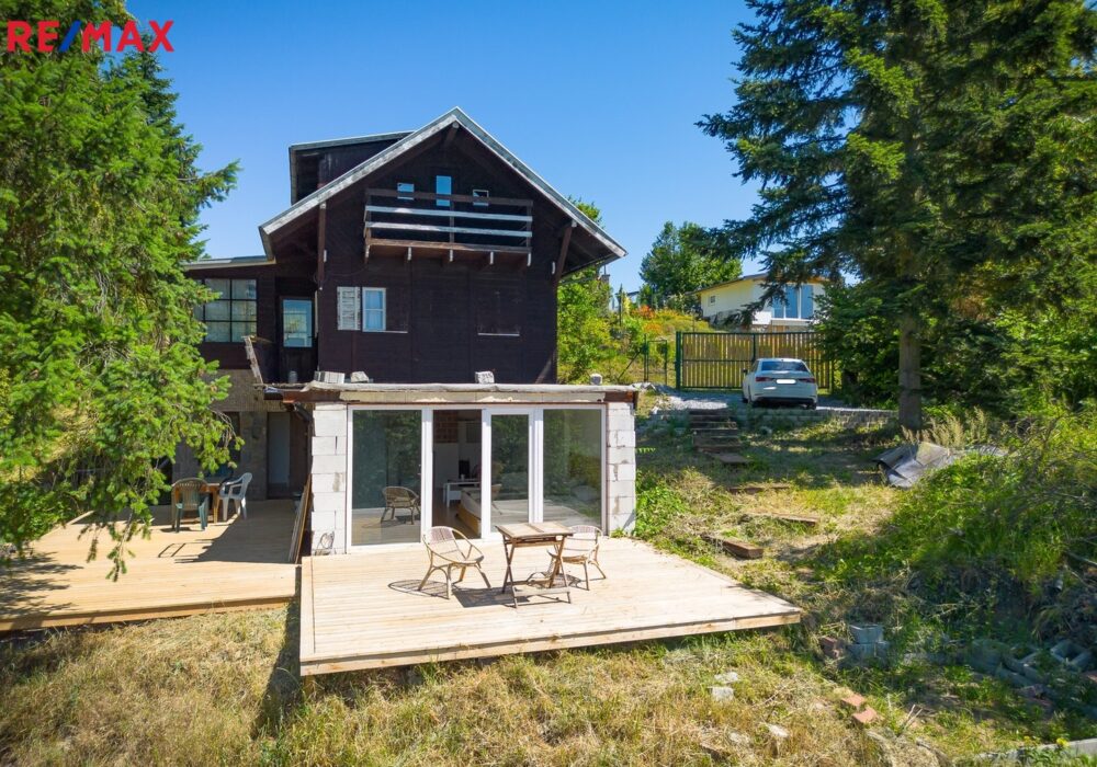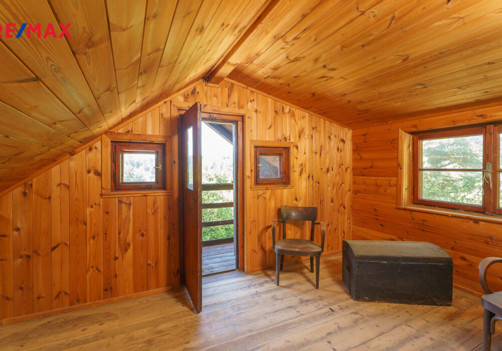 Původní dřevěná chata má téměř dokončenou suterénní přístavbu a na kamenné podezdívce v přízemí uzavřenou prosklenou verandu a dvě místnosti v původním stavu, v podkroví dřevem obloženou ložnici s navazujícím zastřešeným balkonem.