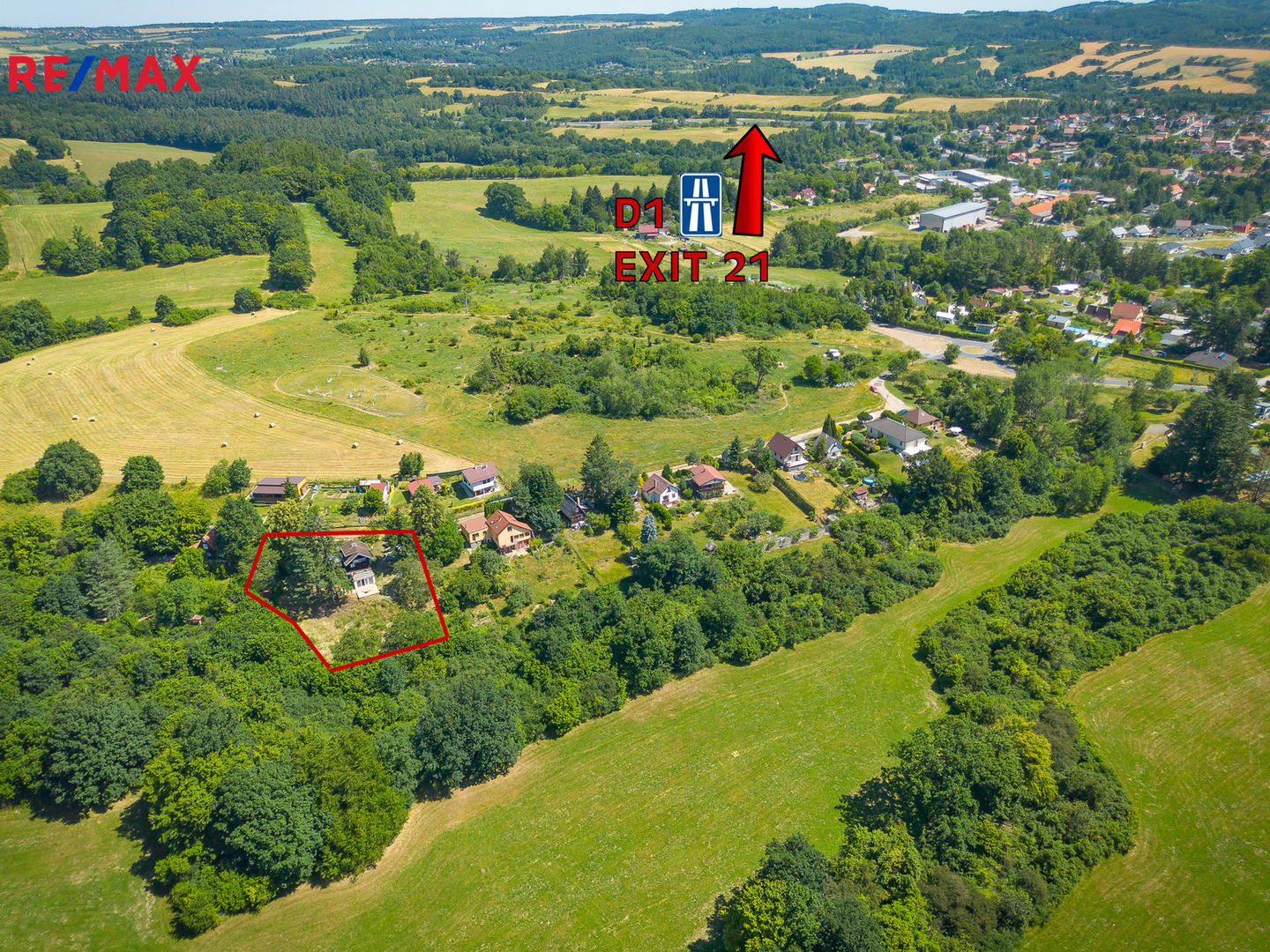 Nájezd na dálnici D1 cca 2 km, Praha jen 21 km.