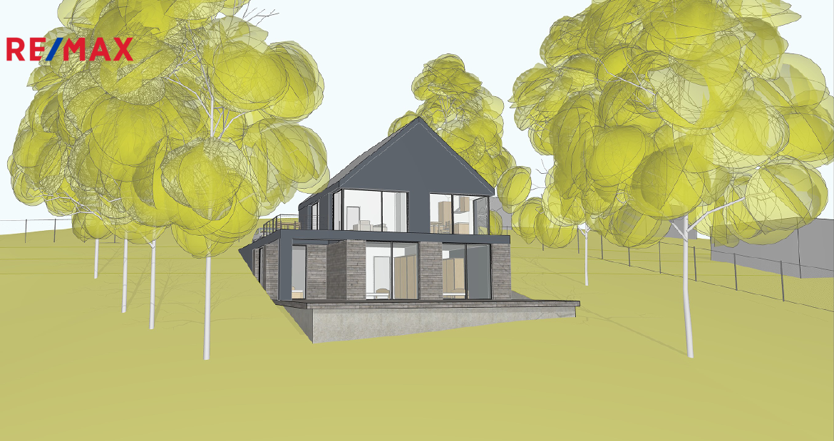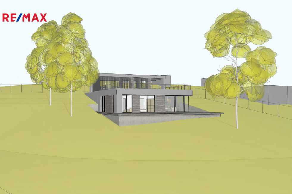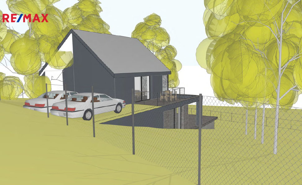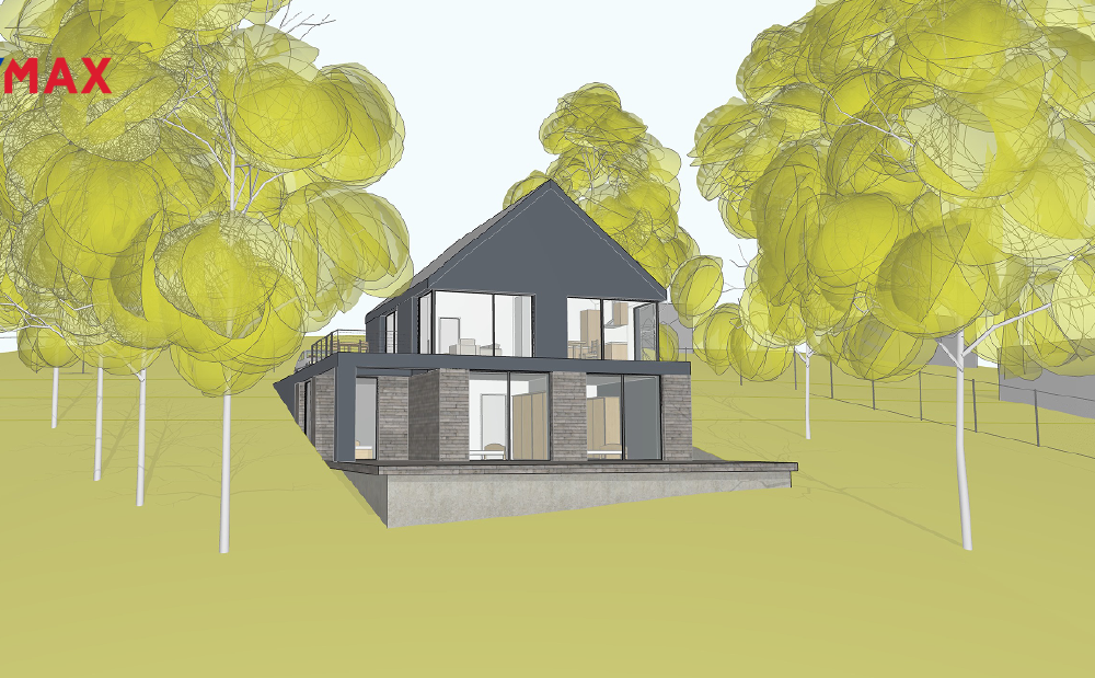 Součástí nabídky je architektem zpracovaná studie moderního využití tohoto pozemku s obytným objektem ve třech variantách.