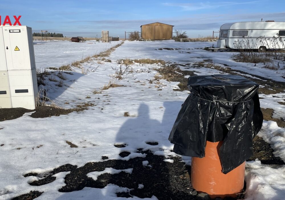 Na pozemku se nachází plechová garáž (aktuálně využívaná jako sklad materiálu).