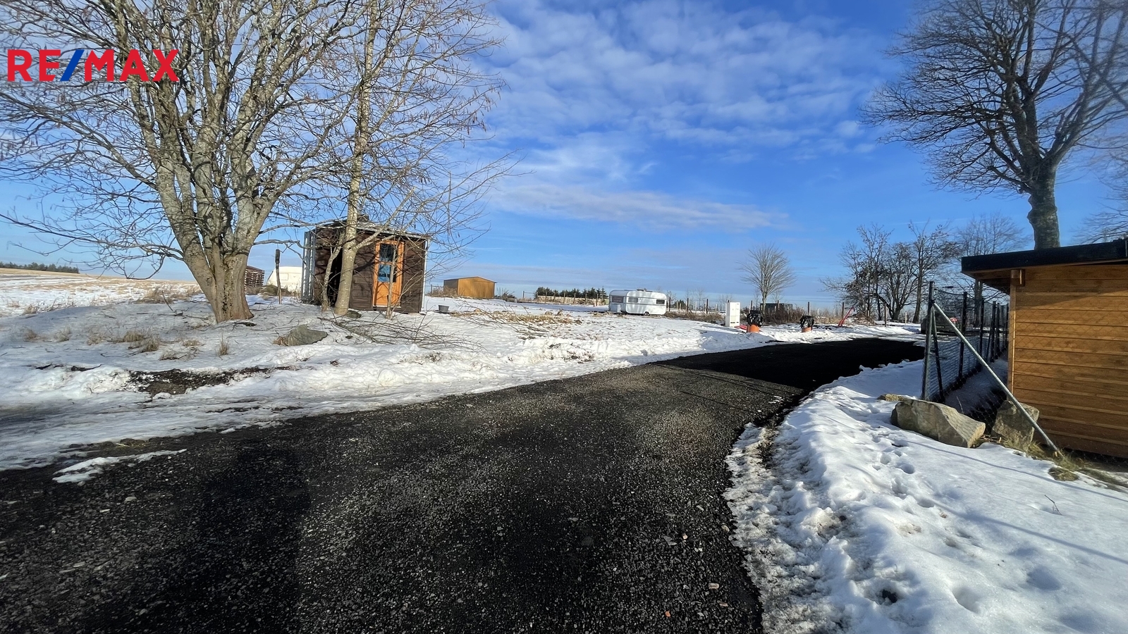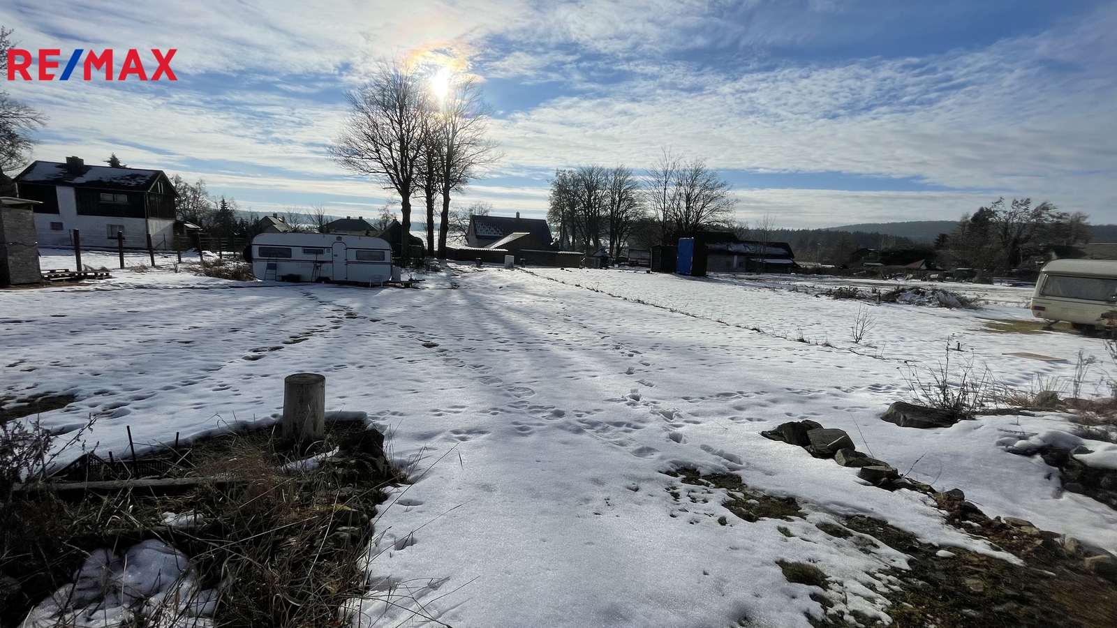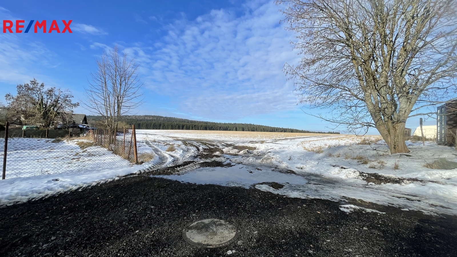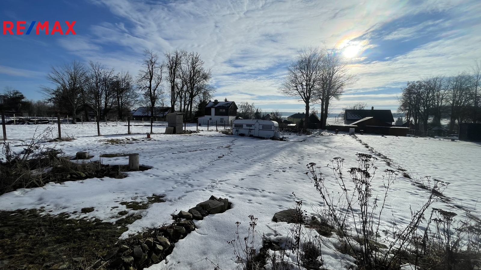 Pozemek je částečně oplocen.