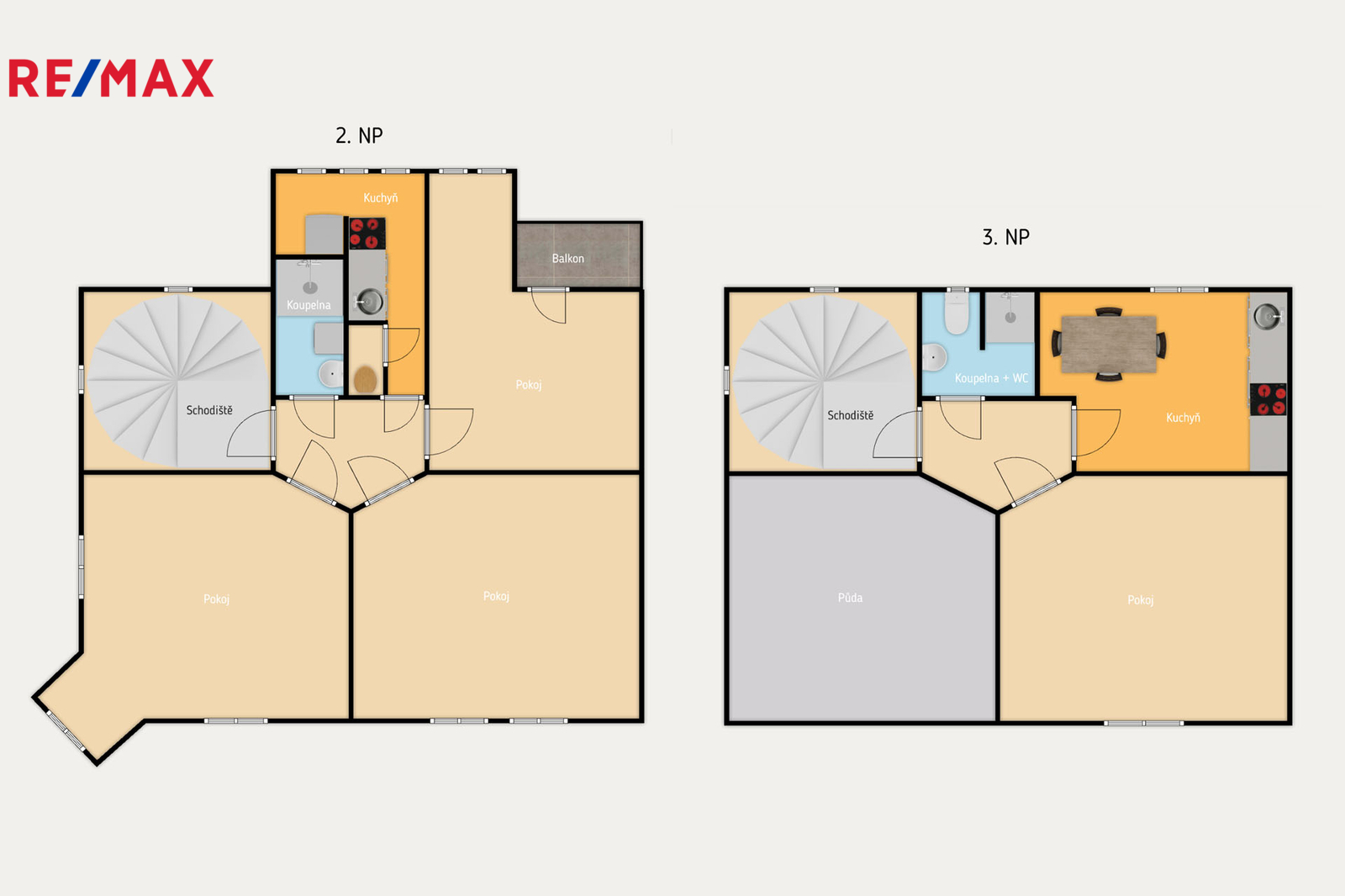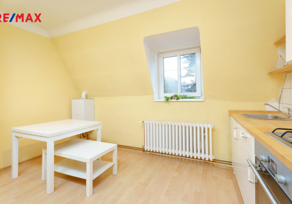 Třetí podlaží je podkrovní, nabízí předsíň, kuchyň, pokoj, koupelnu se sprchou a WC. Také půdu.