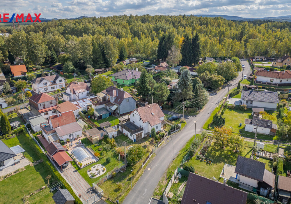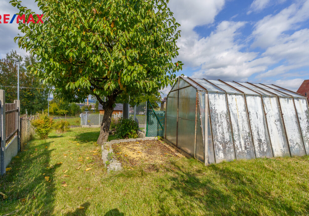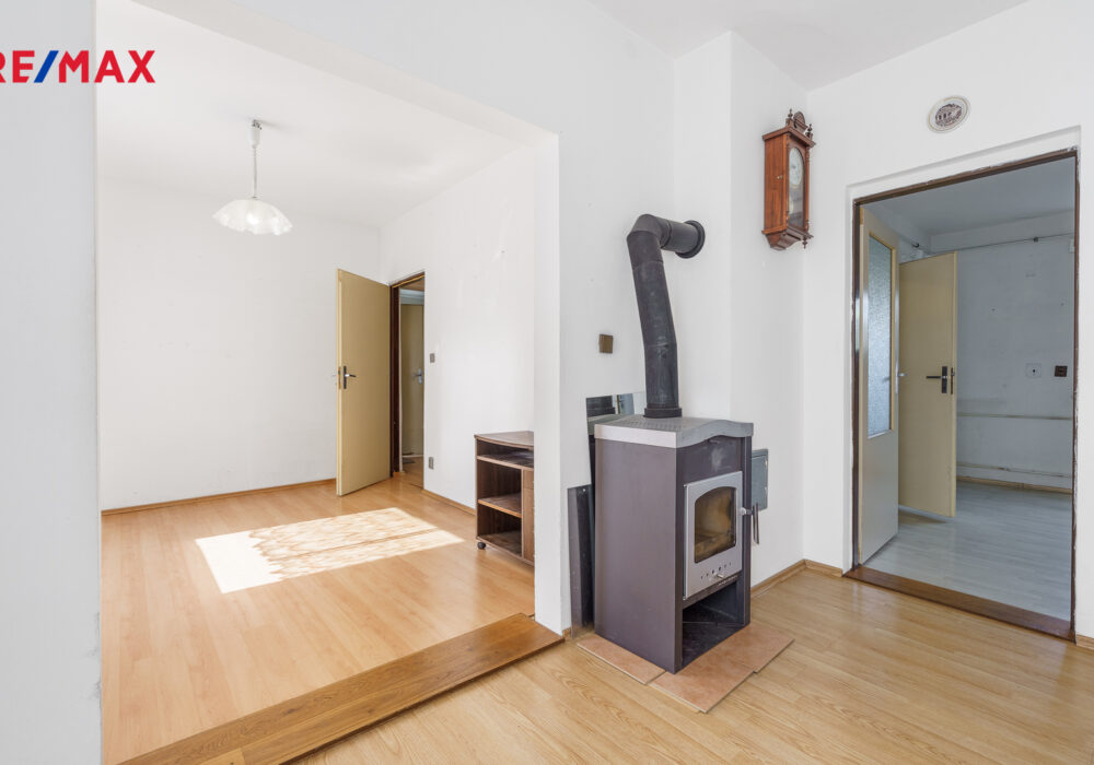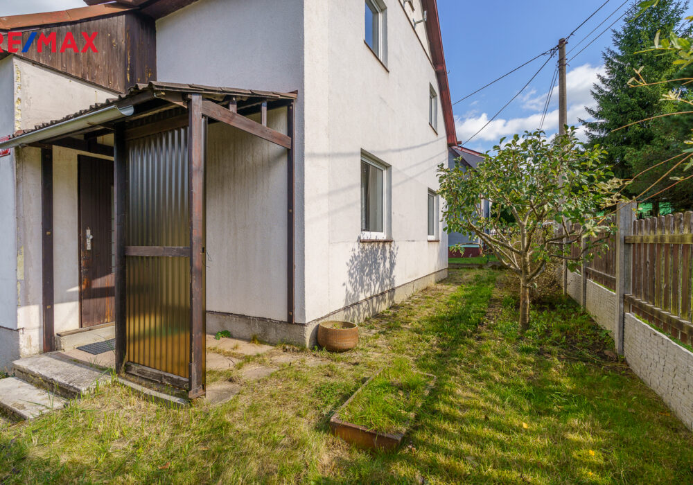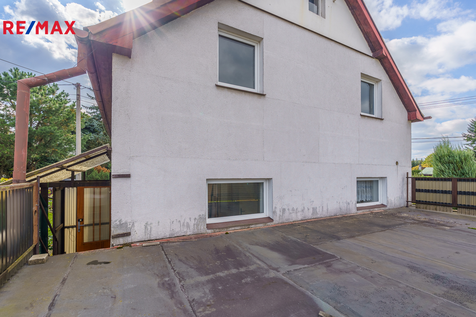 Domek je staršího data, nic méně udržovaný. Jeho dispozice je 4+1. K domu je přistavěná poměrně velká garáž. Na pozemku je skleník a několik stromů a keřů. Dům je kompletně vystěhovaný, což je obrovská výhoda pro nového majitele. Nad garáží, která navazuje na dům, je velká terasa, vchod vede z kuchyně, ze které můžete i na zahradu. Kromě parkování v garáži, je možné parkovat souběžně s domem, nebo za domem.