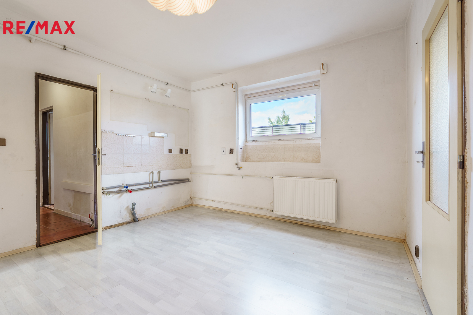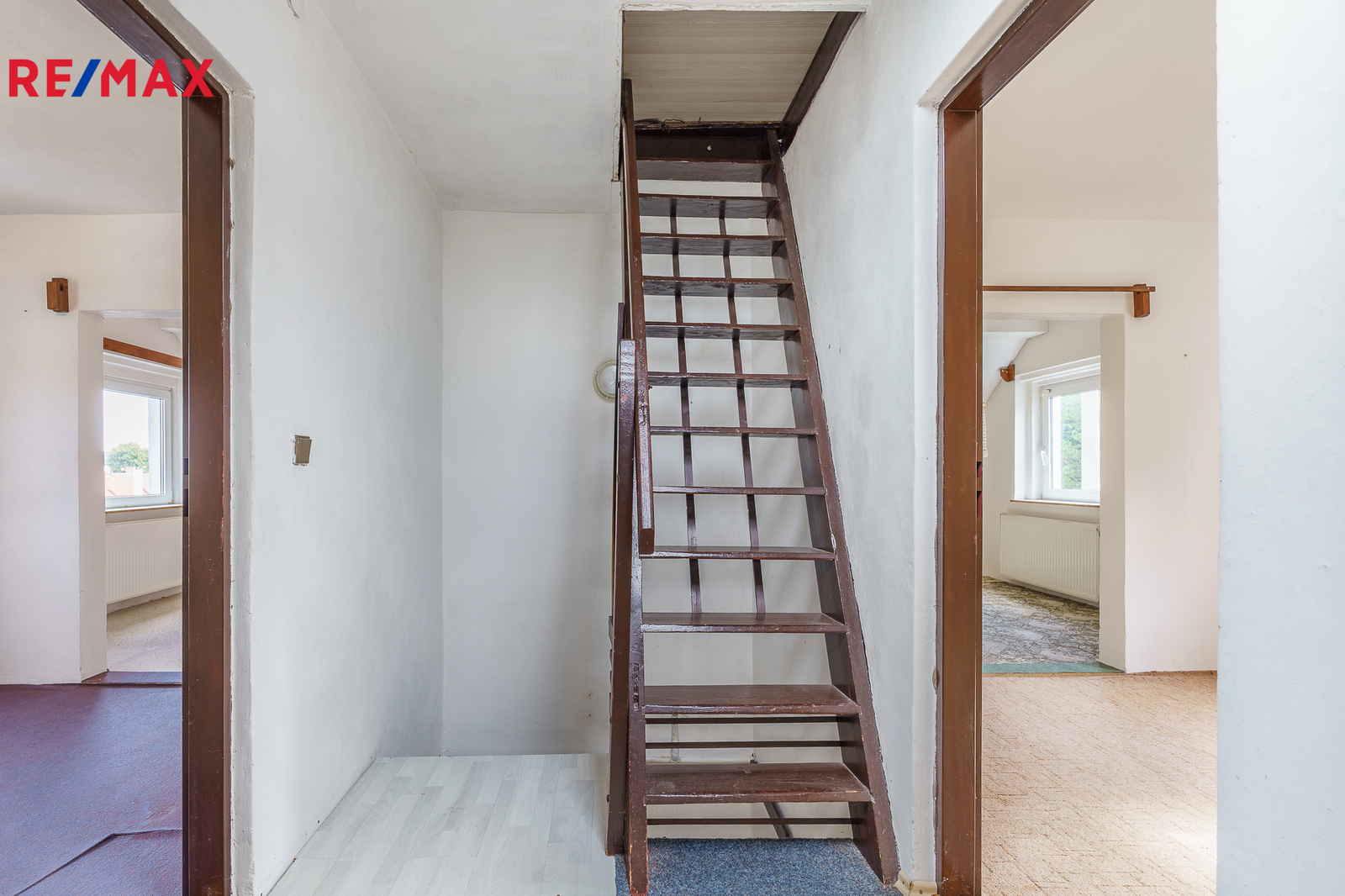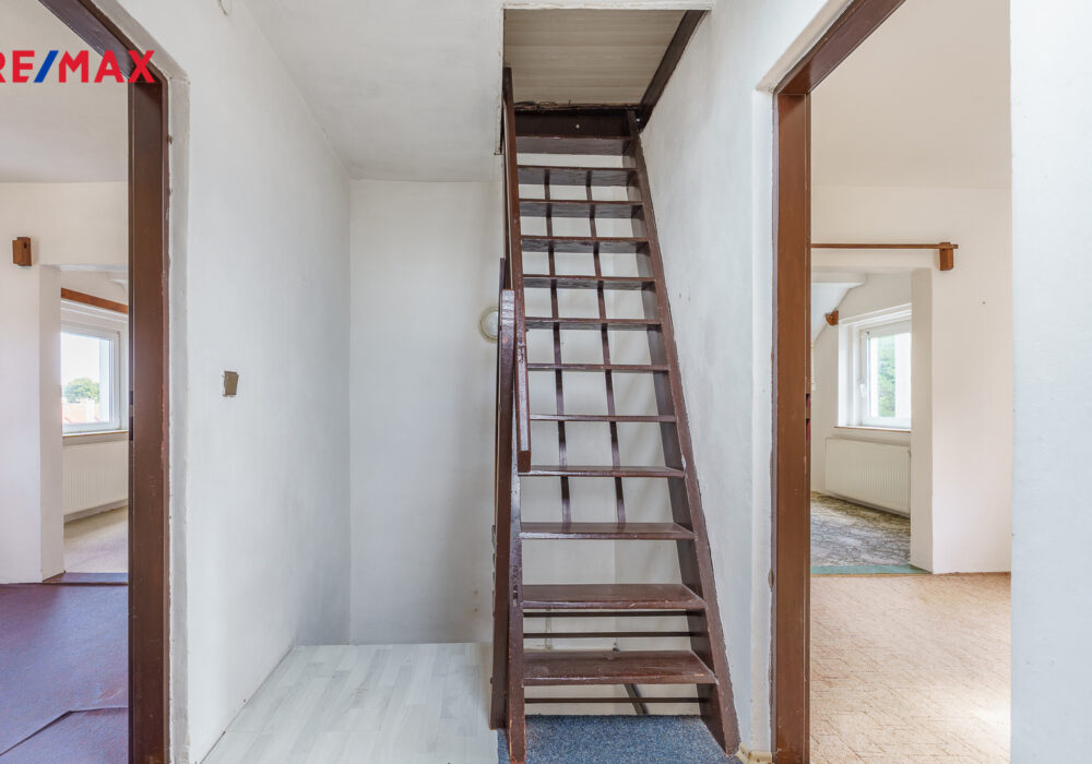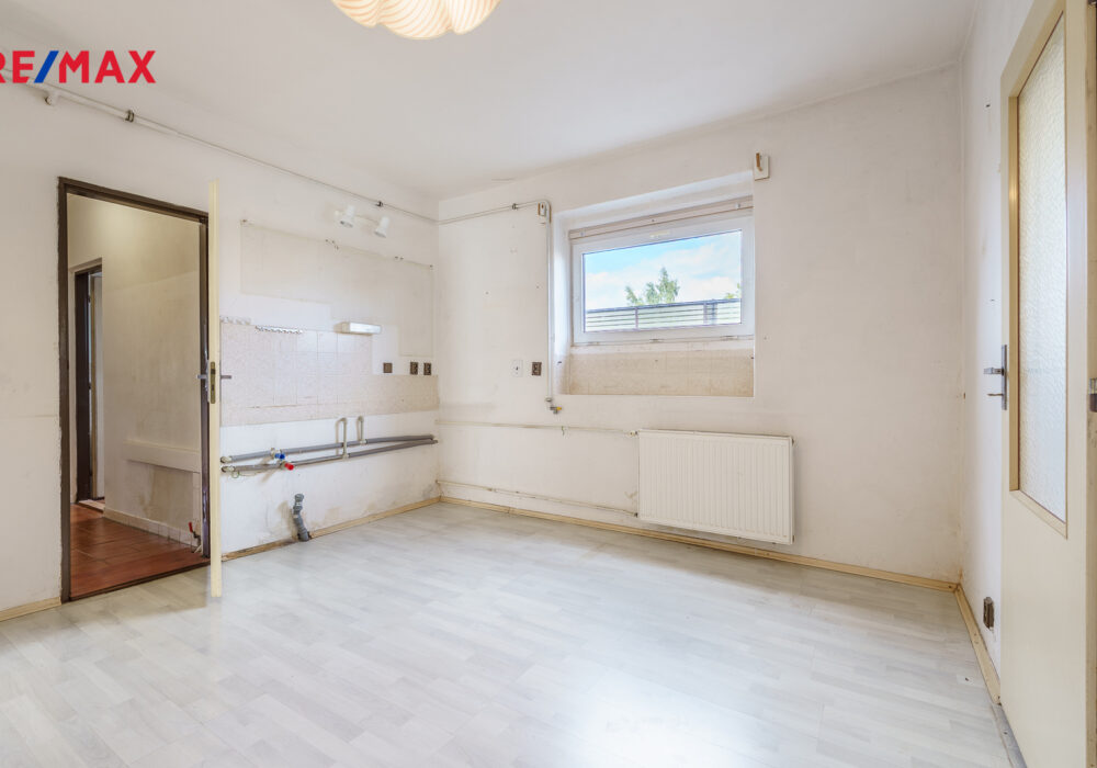 Domek je staršího data, nic méně udržovaný. Jeho dispozice je 4+1. K domu je přistavěná poměrně velká garáž. Na pozemku je skleník a několik stromů a keřů. Dům je kompletně vystěhovaný, což je obrovská výhoda pro nového majitele. Nad garáží, která navazuje na dům, je velká terasa, vchod vede z kuchyně, ze které můžete i na zahradu. Kromě parkování v garáži, je možné parkovat souběžně s domem, nebo za domem.