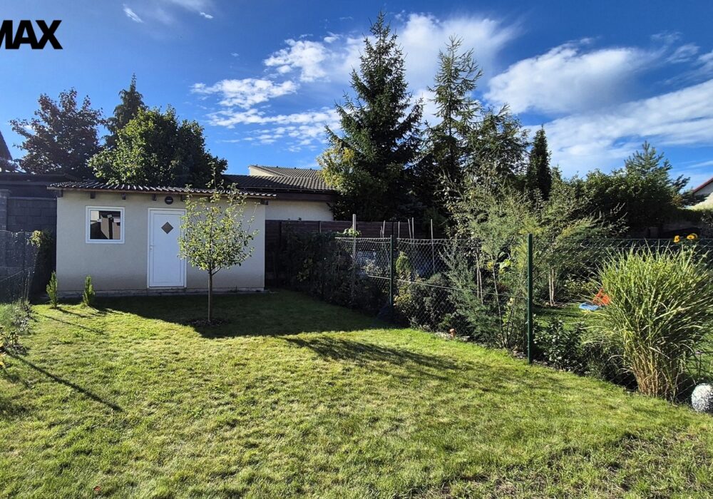 Velkým benefitem je udržovaná zahrada o velikosti 103 m², která rozšiřuje obytný prostor domu. Nabízí bezpečné místo pro děti, prostor pro relax i rodinné aktivity. Díky oplocení máte jistotu soukromí. Praktický zděný zahradní domek řeší úložné prostory bez kompromisů uvnitř domu.