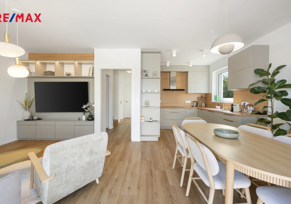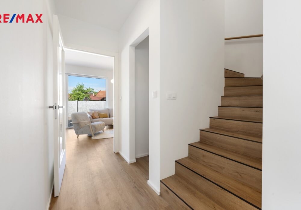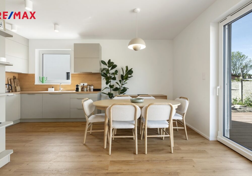 Dům nabízí promyšlenou dispozici 5+kk – čtyři samostatné pokoje, prostorný obývací pokoj s kuchyňským koutem, dvě koupelny a technickou místnost. Celková podlahová plocha činí 112 m². K domu náleží pozemek o velikosti cca 212 m², terasa o velikosti 32 m² a dvě parkovací stání s wallboxem pro dobíjení elektromobilu.