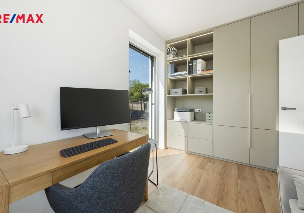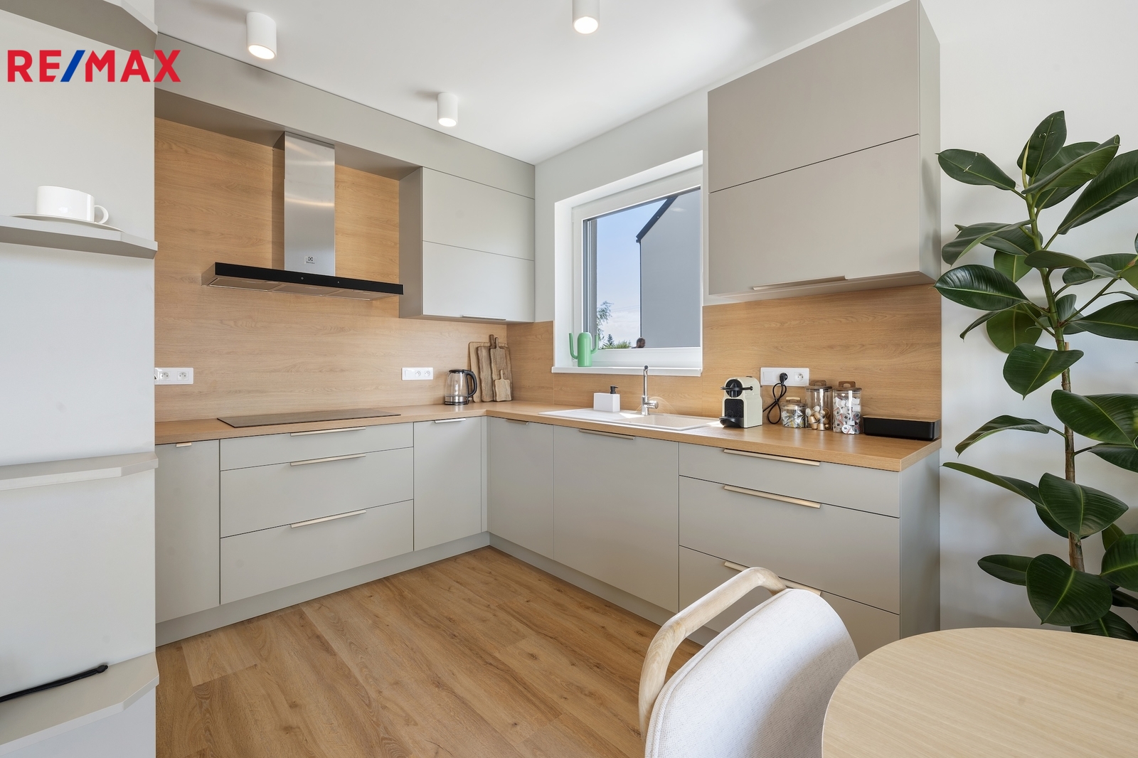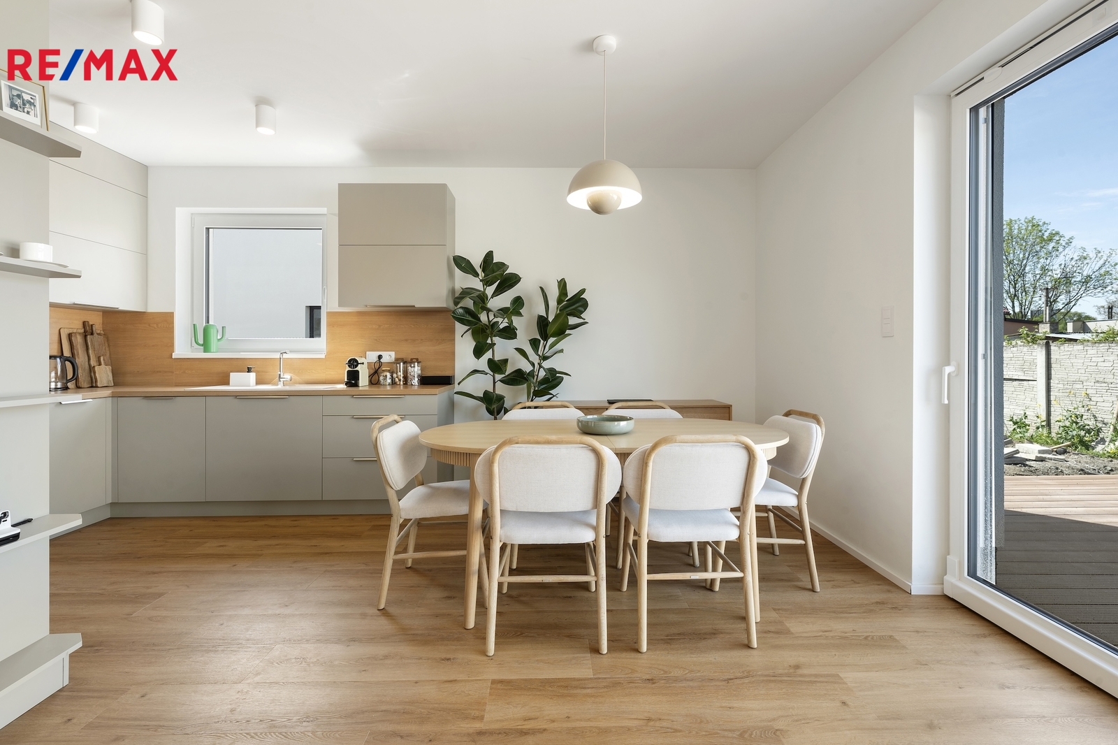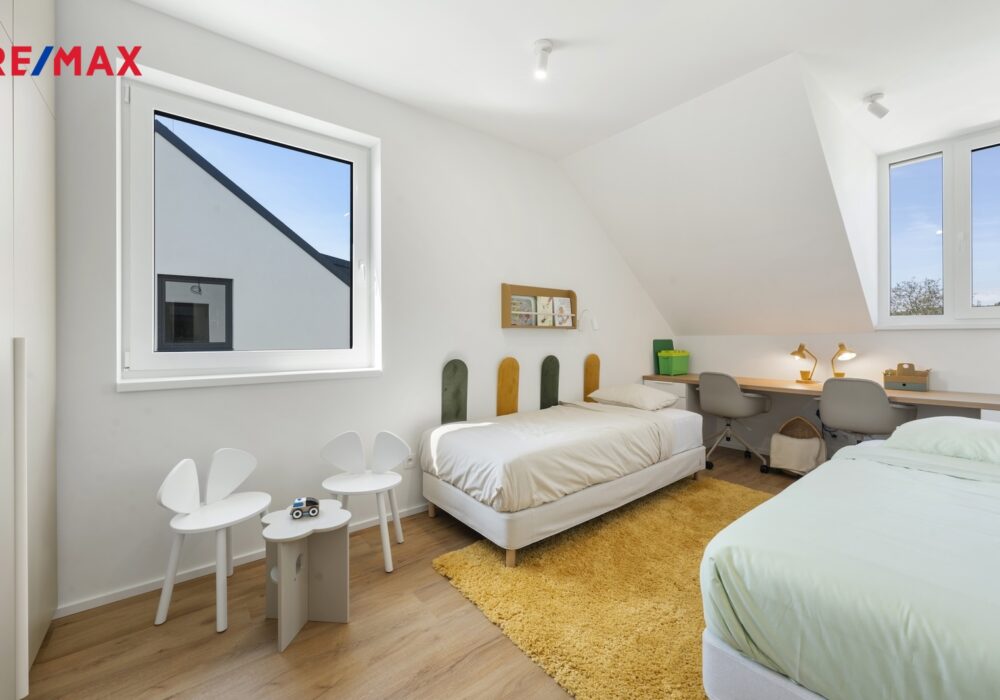 Dům nabízí promyšlenou dispozici 5+kk – čtyři samostatné pokoje, prostorný obývací pokoj s kuchyňským koutem, dvě koupelny a technickou místnost. Celková podlahová plocha činí 112.8 m². K domu náleží pozemek o velikosti cca 150 m², terasa o velikosti 35 m² a dvě parkovací stání s wallboxem pro dobíjení elektromobilu.