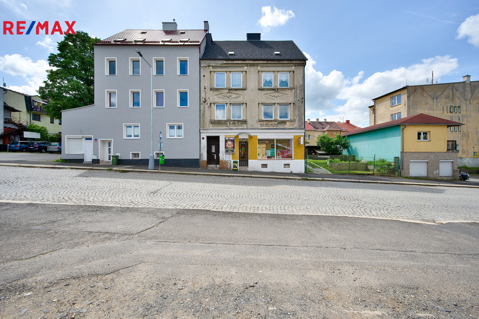 Ve výhradním zastoupení vám nabízíme k prodeji 1/2 podílu na rodinném domě. Dům je rozdělen na dvě bytové jednotky 2+1 a jeden nebytový obchodní prostor o cca 80m2, část domu která se využívá prodávajícím, se nachází na druhém podlaží (1.patře). Byt je o dispozici 2+1 a podlahové ploše 65m2. Bytová jednotka se nachází ve velmi zachovalém stavu, proběhla zde částečná rekonstrukce. Vytápění je řešeno pomocí kotle na tuhá paliva, ovšem je zde možnost si připojit vlastní plynový či elektrický kotel. Užitková voda je ohřívána elektrickým bojlerem. Tato ideální investiční příležitost Vám nabídne za cenu menšího bytu v Aši, získat poloviční podíl na celém domě v centru města. Jedná se o případné nájemné za byt 2+1, a část nájemného za obsazený obchodní prostor.